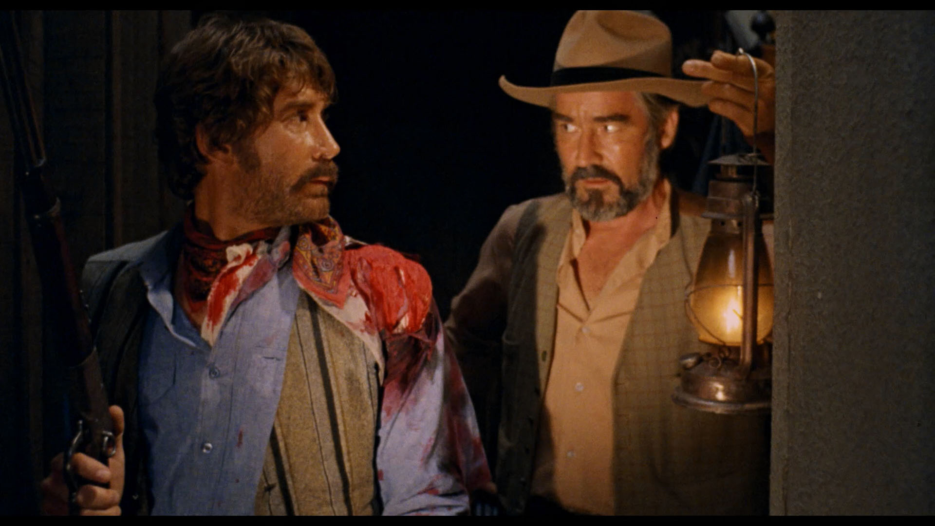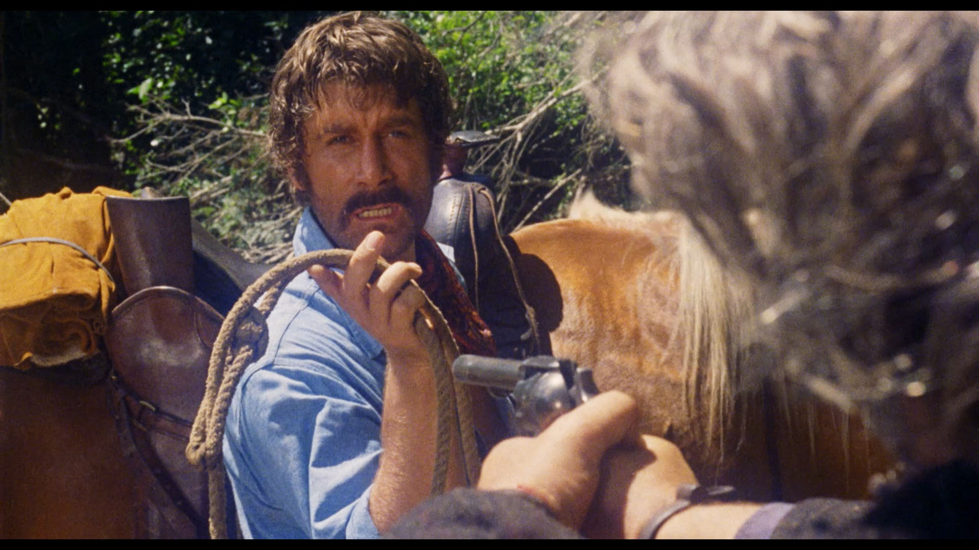 abroad (and even a VHS release from Paragon), it was often sold as an outright horror film but doesn't quite fit neatly into that box. The plot follows intrepid hired gun Cal Kincaid (Alex Cord, fresh off Chosen Survivors and The Dead Are Alive) as he investigates a dusty western town where a coachman has a nasty habit of turning his customers over to a pair of homicidal hostel owners (led by Judy) who enjoy killing off their guests. Lots of beautiful scenery, dining, and buck-naked running around pad out the story a bit too much for comfort, but it's certainly a unique attempt at a grisly oater (similar to the much stronger Cut-Throats Nine) and worth seeking out for the curious.