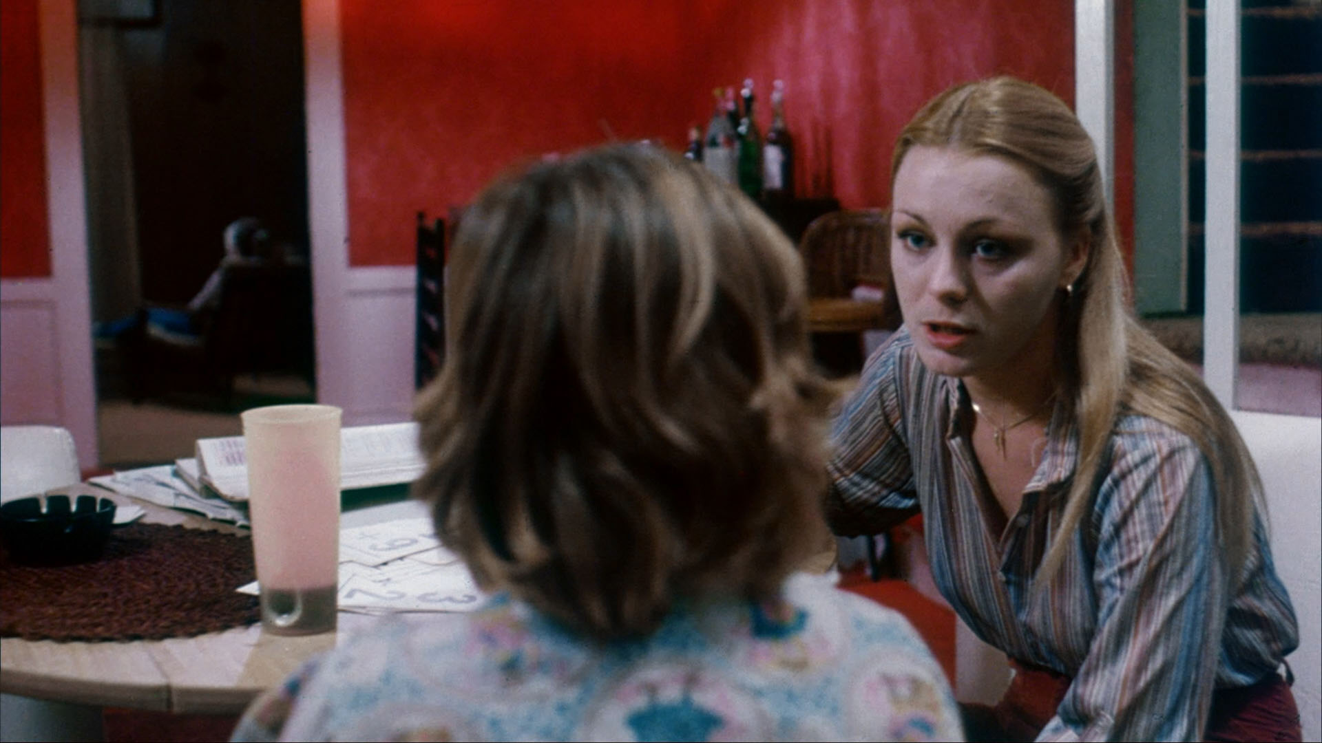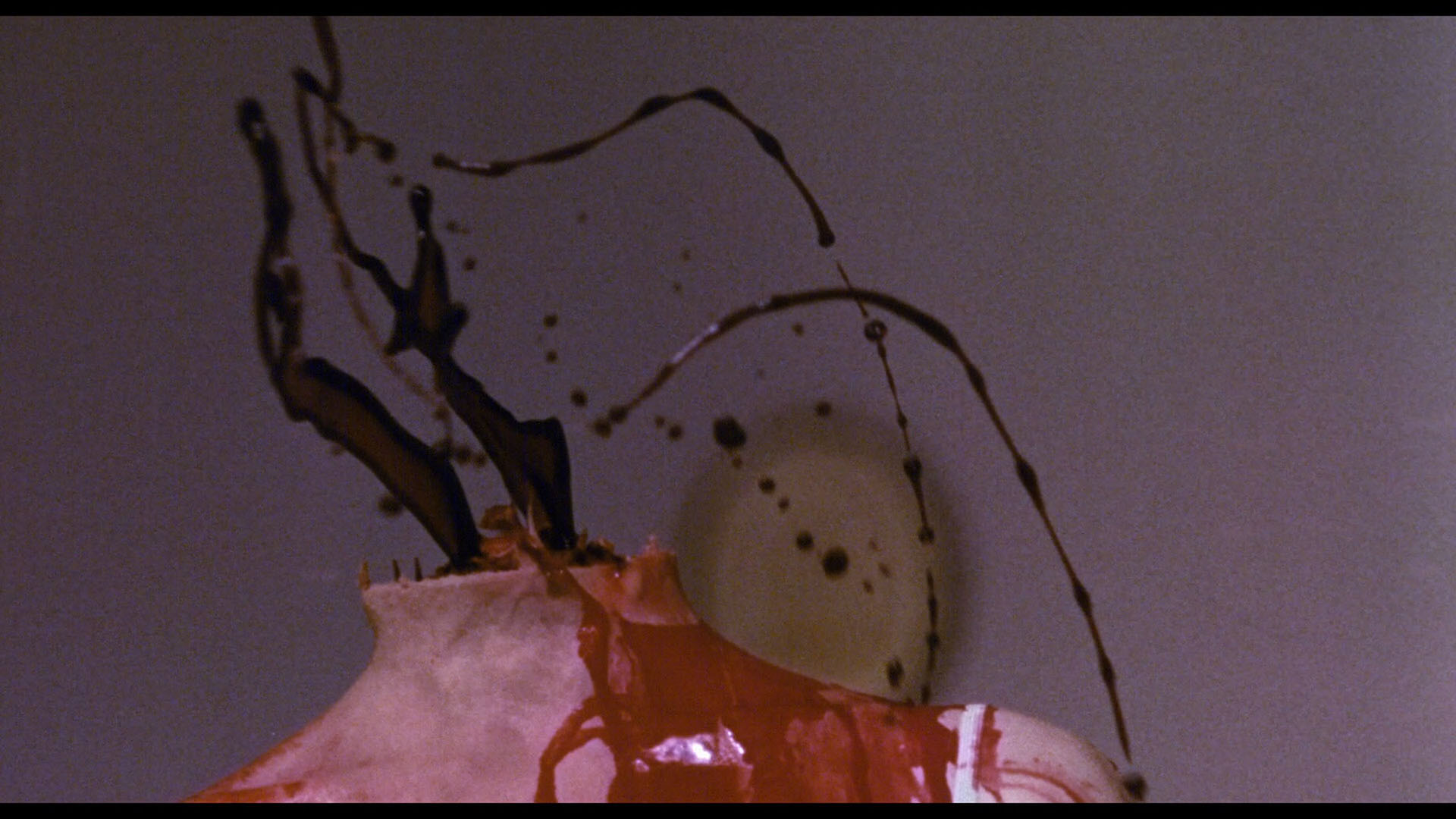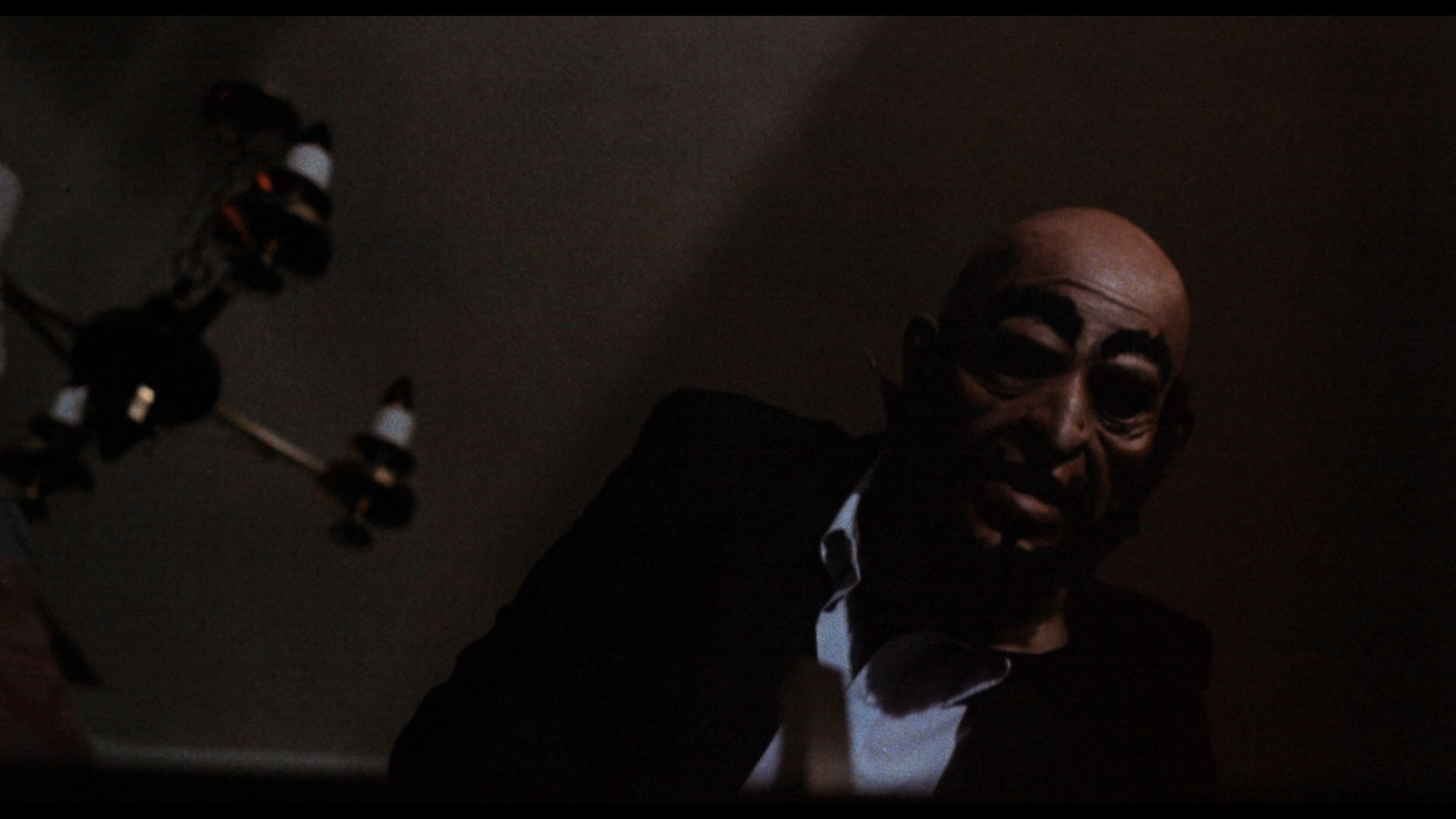 In late 2015, UK label 88 Films threw an interesting twist into the story of this film's video history with its separate Blu-ray and DVD releases as number 12 in its Slasher Classics Collection. The BBFC brouhaha long gone, the film was free to pass uncut -- and in a slightly longer version previously unseen on home video, clocking in at 99m4s (about 39 seconds longer than the longest U.S. cut on the Code Red disc). This doesn't consist of gore but random bits of scene extensions confined to the first third of the film, mainly bits at the heads and tails of scenes presumably lost due to element damage or removed for pacing reasons. The color timing is radically different here, looking brighter and cooler with more detail visible but whites also tended to bloom more; frame grab comparisons can be seen below so you can judge for yourself. The 88 Films transfer has a slight bit of extra info at the bottom of the frame, which means the already eyebrow-raising bit with the vibrator in the peepshow now reveals even more. The LPCM English mono soundtrack has been cleaned up quite a bit but features some pretty extreme leaps in volume, so be prepared to have your remote handy or any nearby pets or neighbors might get very