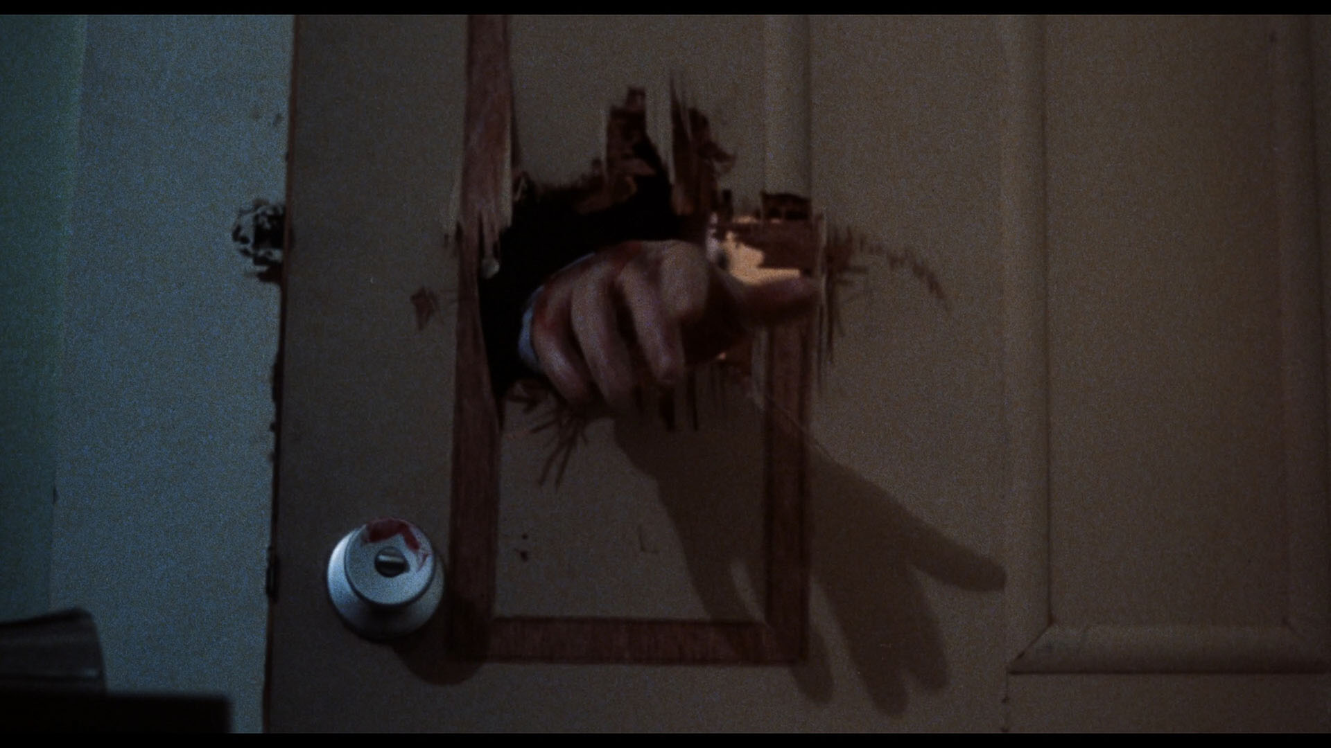 The saga of Nightmare's path to an American DVD release is a long, complicated story winding through years of rumors, distributors, and film element issues, with the title eventually landing in the laps of Code Red and becoming one of their first titles to be announced via trailers included on some of their earlier releases. The wait for an actual release proved to be years in the making, however, and the tribulations could be found looking at the end result as it features no less than three different transfers of the main feature. Disc one contains a "bonus 2008 Hi-Def master... created from the two best 35mm prints," which you can pretty much skip as it's riddled nonstop with damage and debris and ranks as the least satisfying option. More interesting is the "full frame color corrected telecine (2005)," which is (sort of) open(er) matte but cropped a bit on the sides; it looks much cleaner but in terms of detail and color is pretty dreary, though at least this is an approximation (albeit a sharper one) of the grungy, full frame experience many fans first encountered back in the VHS days. The best version by a long shot is the "brand new 2011 telecine" found on the second disc (amusingly pressed to look like a bootlegged DVD-R copy, but don't worry, it is an actual pressed disc). This transfer looks great; apart from a few minor issues like a
