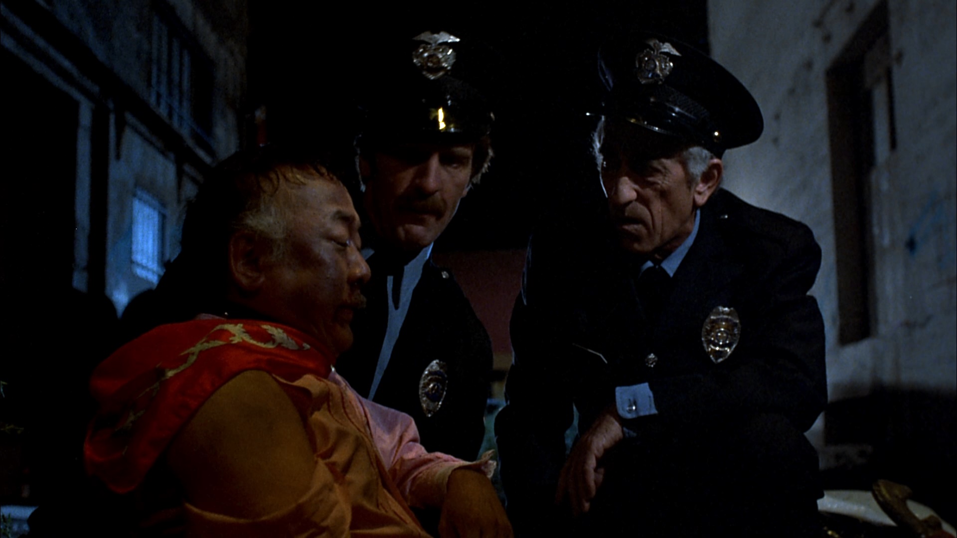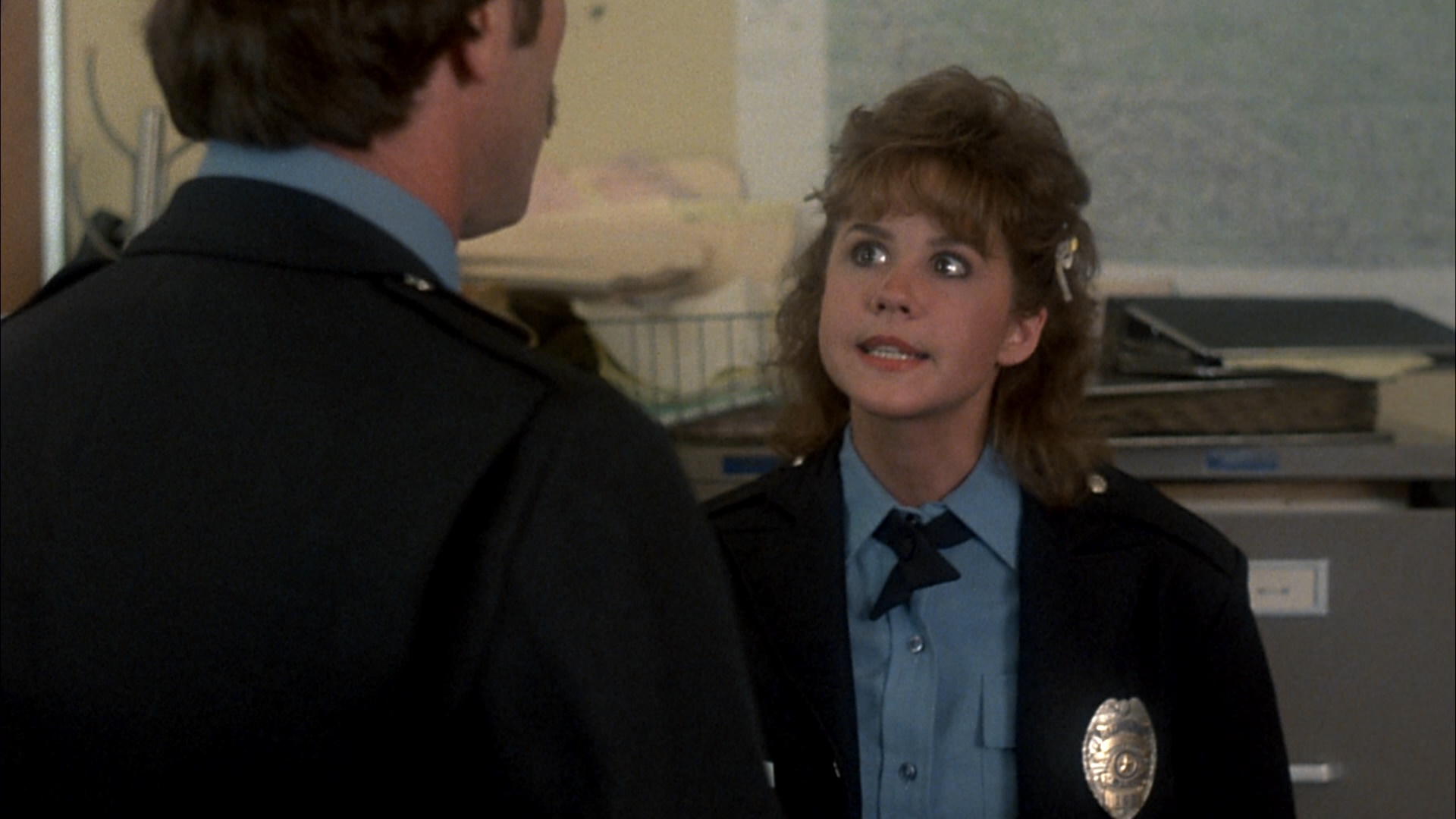 Show's Riley), while his day job is filled with goofballs including his new partner, Kent (Paulsen), potential romantic partner Sue Perman (Blair), and his boss, Captain Lewis (Barty), who's not only foul tempered but prone to extreme flatulence. Mostly it's a collection of childish gags involving cockfighting, sperm banks, blackface, sexual assault, homosexuality, and other random topics, all handled with the sensitivity you'd expect. Along the way you also get random appearances by a young Andrew Dice Clay, Kitten Natividad, Sydney Lassick, Langston's TV co-star Jaye P. Morgan as his showbiz manager, and a completely baffling extended cameo by Pat Morita (who earned an Oscar nomination for the same year's The Karate Kid, incredibly enough) as a dumpster-dropped rape victim talking with a dubbed little girl's voice. In short, it's the kind of film designed to be watched with as many beers and as little brain power as possible.