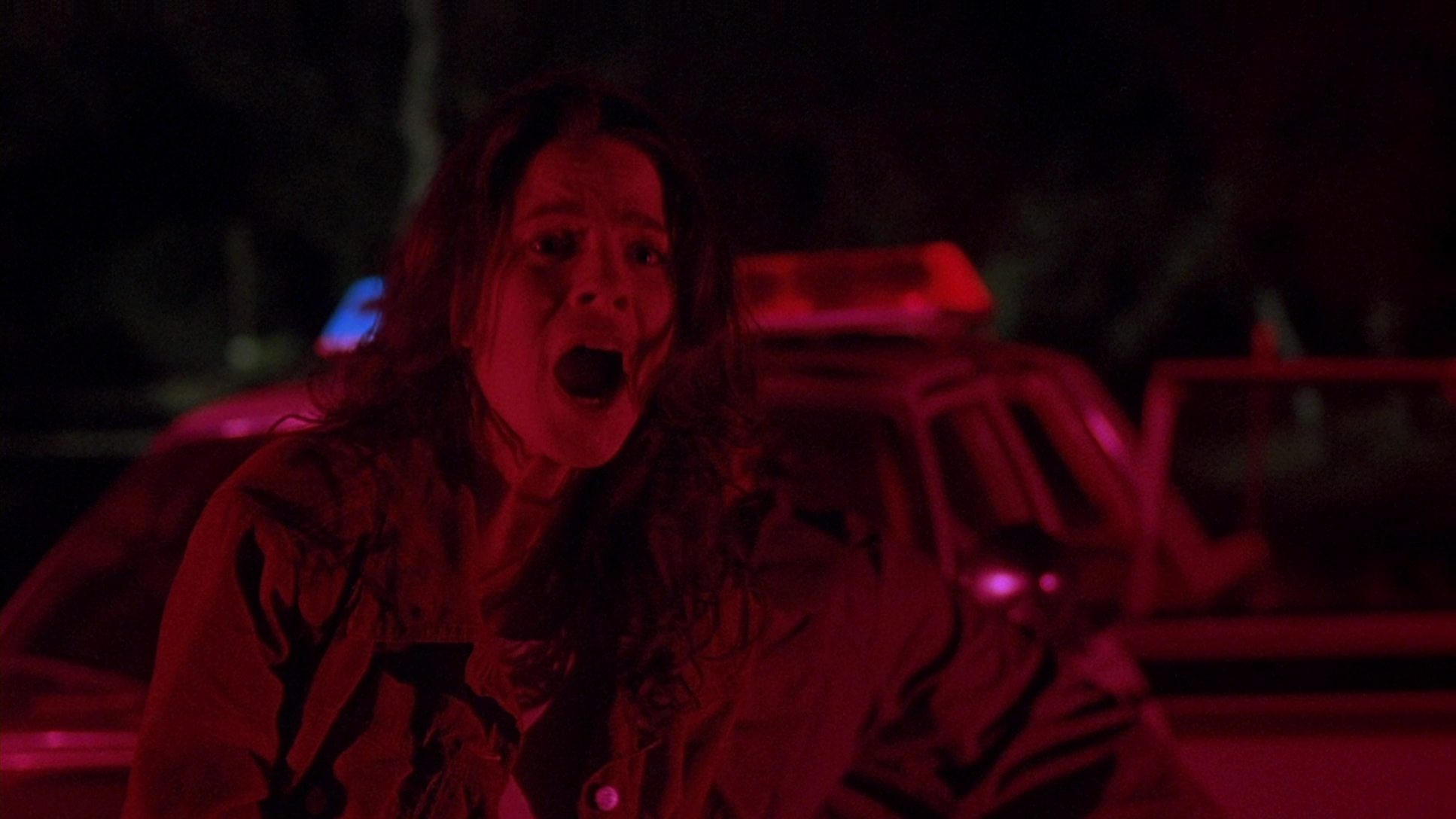 of the Dolls) make brief but welcome appearances as well, the latter in a pivotal flashback. However, for many the highlight of the film is the big scene with Hawkes and a young Cristi Harris, who supplies the requisite T&A the same year she appeared in Night of the Demons 2 (and would go on to appear on TV's Passions and Sunset Beach). Considering Night of the Scarecrow's undeserved slide into darkness for nearly decades, its 2013 revival on Blu-ray and DVD from Olive Films comes as a welcome surprise and a chance to reevaluate a film never really seen in prime condition. Not surprisingly, the new HD transfer (shown off to particularly vivid effect on the Blu-ray with lots of gorgeous, saturated reds and blues in abundance) proves to be a major revelation compared to the murky videotape edition, and the DTS-HD stereo track supplies plenty of kick considering the film's budgetary limitations. As with fellow Republic '90s horror offering Ticks, this one comes tricked out with more extras than usual for the label, highlighted by a lively commentary track with Burr and moderator Daniel Griffith (best known for his Ballyhoo Pictures video extras). A familiar participant on discs for both his own films and those of other filmmakers (including a wide variety like The Name of the Game Is Kill!, The Visitor, and Sole Survivor), Burr's love for the genre shines through once again as he covers the making of the film from every angle imaginable. Among the highlights are his discussion of the original script (which had the scarecrow spitting out Freddy Krueger-style one liners), the participation of editor and future Grindhouse Releasing head Bob Murawski (right off his gigs for Army of Darkness and Hard Target), the film's apparently jinxed release history, the producers' aversion to even hearing the name of Dark Night of the Scarecrow, and his memories of the numerous cast members. Also included are a gallery of stills and storyboards (with additional Burr commentary) and the original promotional featurette for the film, sourced from VHS and featuring many members of the cast and crew offering enthusiastic sound bites about the "wild ride" they were making. Hopefully the second time around will be luckier for a film that deserves to be a regular Halloween favorite.
