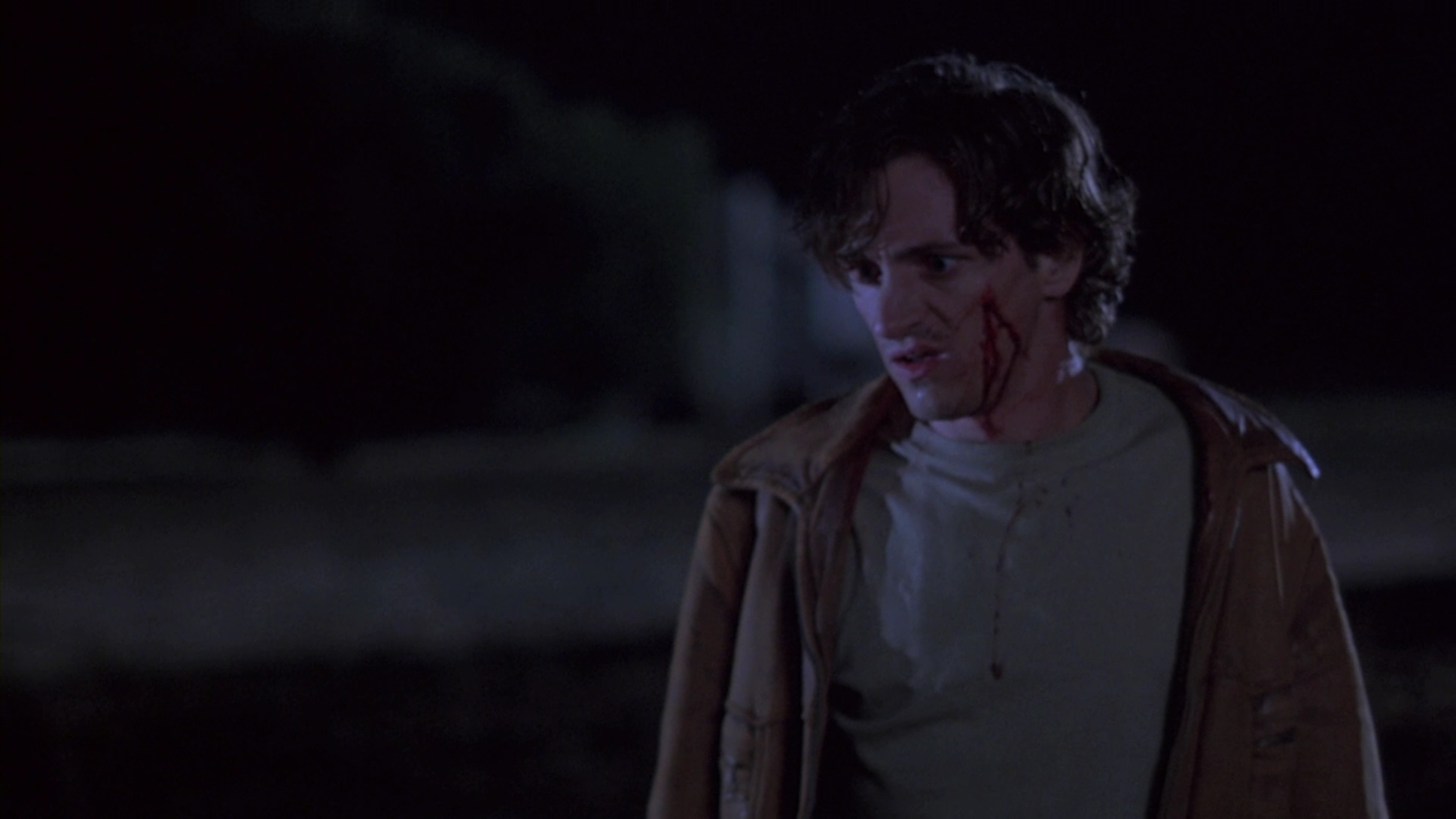 theatrical collapse in the early 1990s, Night of the Scarecrow is one of those titles fans tend to run across by accident and wonder why no one else ever seems to know about it. Denied a theatrical release due to distributor woes and the rapidly cannibalizing of movie screens for indie fare like this, the film squeaked out onto VHS in 1996 from Republic Pictures with fairly striking cover art; however, that wasn't enough as it quickly drifted into obscurity, existing solely through word of mouth and fan swaps at conventions. Though it doesn't try to overhaul the horror genre in any way at all, it's certainly worthy of attention as it delivers plenty of grotesque, gruesome thrills, all packed with a surprising cast and some stylish directorial panache.In the small town of Hanford, "a special place for special people," something seems a bit amiss with the imposing scarecrow guarding the area's precious, lucrative crops. Claire (Barondes), the daughter of the town's no-nonsense mayor (Lockwood), teams up with (and gets into bed with) a new construction worker in town, Dillon (Mese), to tick off her dad when she gets back in town, but more pressing is reckless teen punk named Danny (future Oscar nominee Hawkes, years before The Sessions), who accidentally plows up a protective stone marker near that creepy scarecrow. Soon people are getting bumped off left and right in a variety of gory and possibly supernatural methods, with the eccentric local priest (played by Diamonds Are Forever's Glover) showing up at Claire's doorstep after getting his mouth bloodily