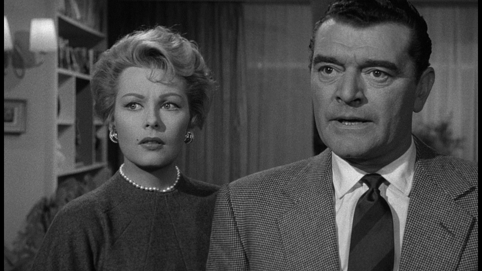It shouldn't be much surprise that disc three's Wicked As They Come is one of the most purely noir films in the set and more than lives up to its title. A studio "it girl" in the '50s who went into numerous other commercial enterprises over the years (and gave birth to Lorenzo Lamas), American star Arlene Dahl appears here for the first of two titles as a very bad, manipulative young woman who rises from poverty and uses a "Miss Stylewear" contest prize to travel to Europe to climb the social ladder. Taking on the name Kathy Allen, she sets her sights on multiple men including prominent photographer Larry (Goodliffe) whom she promptly fleeces. She also goes after married ad agency head Stephen (Marshall) and one of its employees, Tim (Carey), warding off competitors including territorial spouses along the way. Naturally, a killing occurs that throws all over her plans into disarray.
