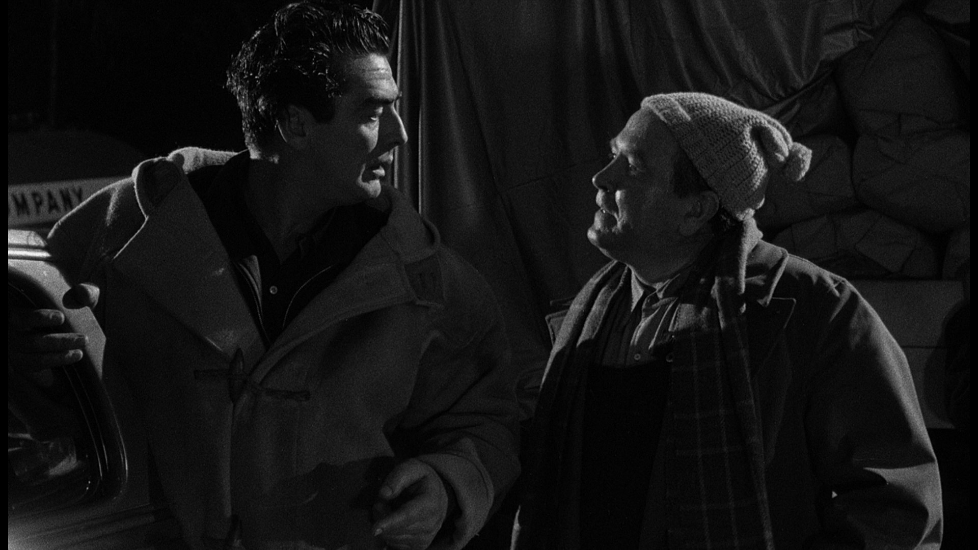 Visually speaking this is definitely the darkest film in the set with an intentionally grainy, sometimes distressed look that gives it a documentary feeling at times. That's reflected in the accurate transfer here which certainly can't be called pretty but does deliver the atmosphere. An insightful new audio commentary with Will Fowler and Vic Pratt covers the frequently rain-choked Liverpool setting, the logistics of the main job, the Frankie Goes to Hollywood connection (yes, really), a surprising detour into borderline Gothic horror territory, and backgrounds on pretty much every actor you see. The 2010 featurette "In for the Long Haul" (9m40s) features interviews with third assistant director Ted Wallis and focus puller Alec Burridge about Dors' often underrated abilities, the process of getting promoted and moved around behind the scenes in the British production system, some noteworthy tricky shots, and the challenges of working with large vehicles in front of multiple cameras. The 1956 short The Long Night Haul (19m40s) is an in-depth