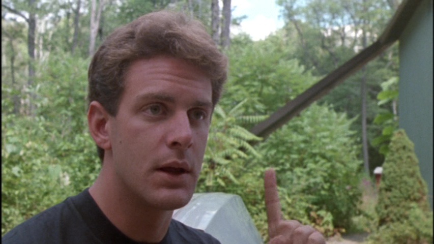 horror's greatest heyday, but the post-slasher lull did produce some entertaining genre offerings for those willing to dig around a little bit with far too many worthy titles heading straight to video. Case in point: Theres's Nothing Out There, whose big hook in subsequent years is the fact that it's one of the earlier meta horror titles (which led the filmmakers to mention Scream a lot later on), though in this case it's based around monster movies rather than slashers. Basically it's one step beyond Waxwork, Evil Laugh and Night of the Creeps as this time one of the characters is an expert on horror movies and tries to warn everyone about staying alive out in the woods, but of course, no one listens.
