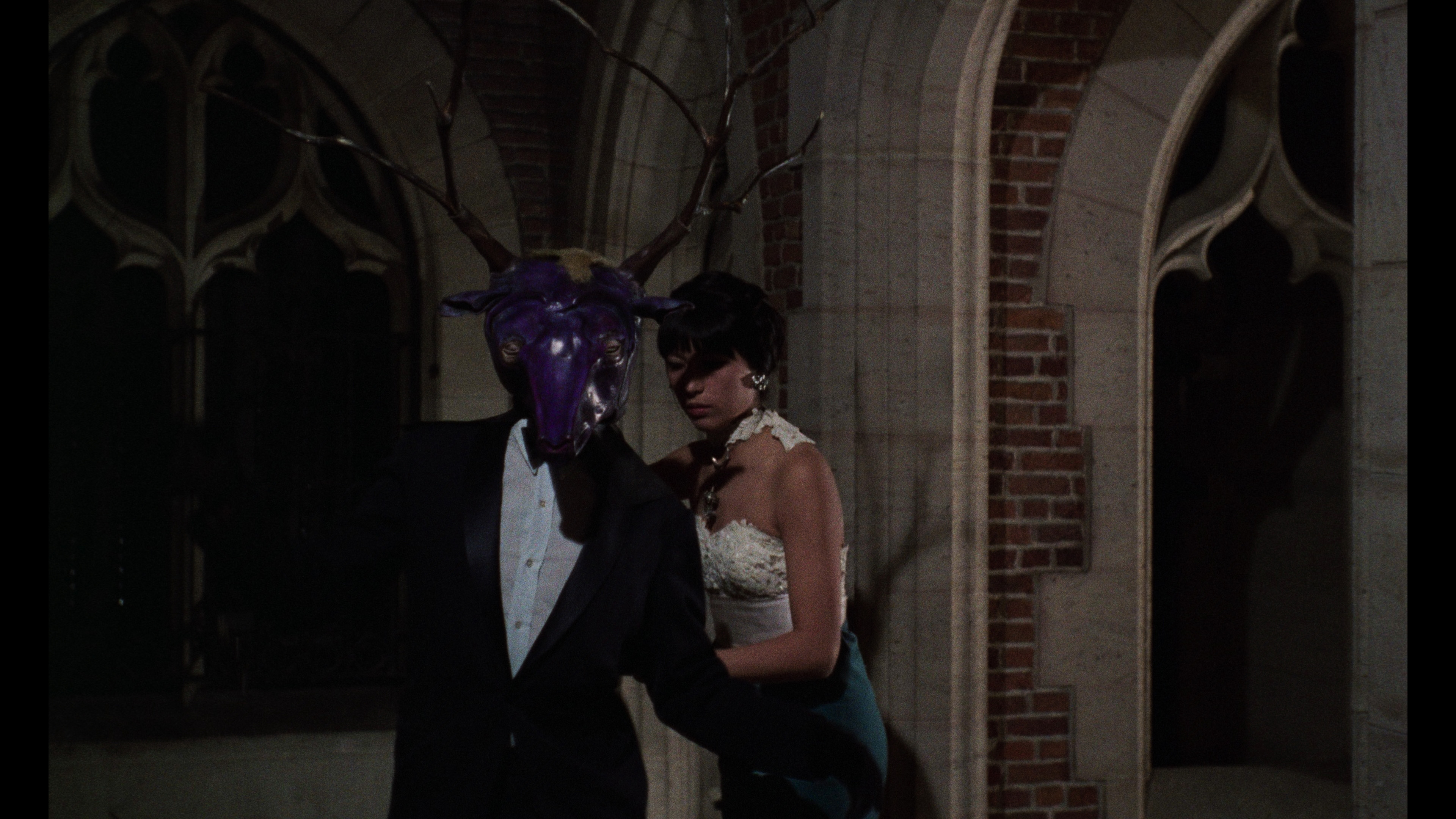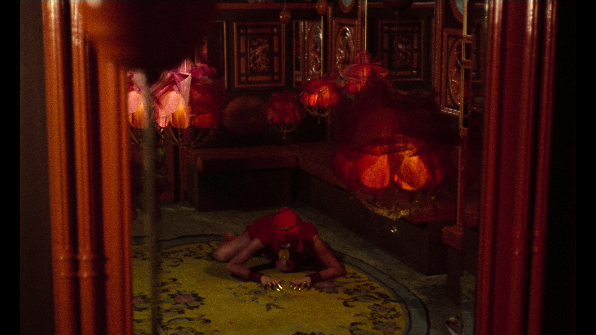if possible as the new 4K restoration really shines to the fullest there, with HDR-compatible Dolby Vision especially welcome for one of the director's most vibrant concoctions. Here you get the option to watch the film in its original French version or the genuine export English-dubbed one, which does some editorial shuffling including putting the main titles right at the beginning. The LPCM 1.0 mono tracks sound great as well and feature newly translated English subtitles as well as SDH subs for the English dub.