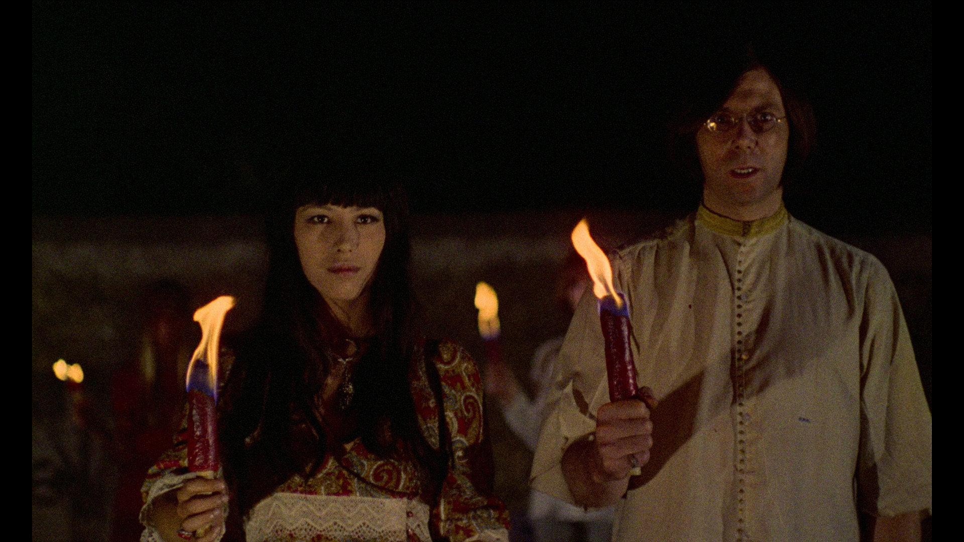 A new audio commentary by the always engaging Kevin Lyons and Jonathan Rigby takes you through the peculiar landscape of Rollin's cinema and touches on his manipulation of vampire, pulp novel, and comic art tropes, the transition in Euro vampire cinema taking place that would reach fruition in the more sexually liberated 1970s, comparisons to Rollin's prior feature, the reception by the French press, and the ideas established here that would blossom in his later work. Video extras here include a slight polish of the '98 Rollin intro (5m26s), an updated revision of the "Journey" featurette by Rollin assistant Daniel Gouyette as "Le Passage" (8m54s) with Natalie Perrey, Jean-Noël Delamarre, and Jean-Pierre Bouyxou, and a streamlining of the "Memories" featurette here as "Fragment d'un dialogue" (19m23s) collecting Rollin interview highlights with Gouyette from a five-year period up to 2003. New here are "An Anarchist Vampire in Paris" (5m26s), with archivist Lucas Balbo explaining how his father's friendship with Rollin and their association with the Fédération Anarchiste provided an unusual gateway to these films, and "Countercultural Gothic" (10m2s) with the always insightful Virginie Sélavy parsing out the film's place within the uniquely French strain of the hippie movement and its aesthetic ties to what was going on in pop culture. Also included are the French and English trailers, plus hefty galleries for promotional and publicity material (104 images), behind the scenes (59 images), and additional photography (46 images). The limited edition package also comes with an 80-page book with a new essay by David Jenkins, an archival Rollin intro and interview highlights from 1973 and 1996, and a dive into Lettrist artist, filmmaker, and Rollin collaborator Maurice Lemaître.