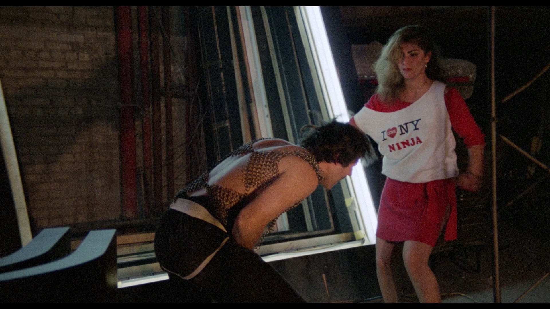 which starts off at the headquarters of 21st Century Distribution (who was initially involved in the project) and then heads through a number of familiar spots then and now around the city. A lengthy reel of silent, full aperture deleted scenes (26m59s) features Spieler commenting on why they didn't make the final cut, complete with a look at some fun showdowns and other bits of madness preserved here for posterity. There's also more of those crazy characters seen in the rap-fueled end credits, too, in case you were wondering. If that isn't enough unseen goodness, there's also an outtake and b-roll montage (10m18s) with some other celluloid odds and ends (More street dragging! More helicopter!), followed by a vintage VHS sizzle reel (9m27s) designed to raise funds for the feature and a 4m23s gallery of great candid production photos. Finally the set comes with a hefty insert booklet, "A Tale of Two Ninjas: The Story of How New York Ninja Came To Be," a more personal take by Spieler about how his hiring at Vinegar Syndrome led to the little action movie miracle we now have in our hands.