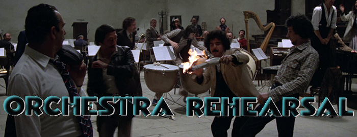 least seen and most challenging of the four theatrical feature films by Federico Fellini released in the 1970s, Orchestra Rehearsal finds the maestro at his most abstract. Gone is the voluptuous indulgence of his two prior tapestries of life, Amarcord and Roma; here the action is mainly confined to one building, an austere chapel converted into a music auditorium.