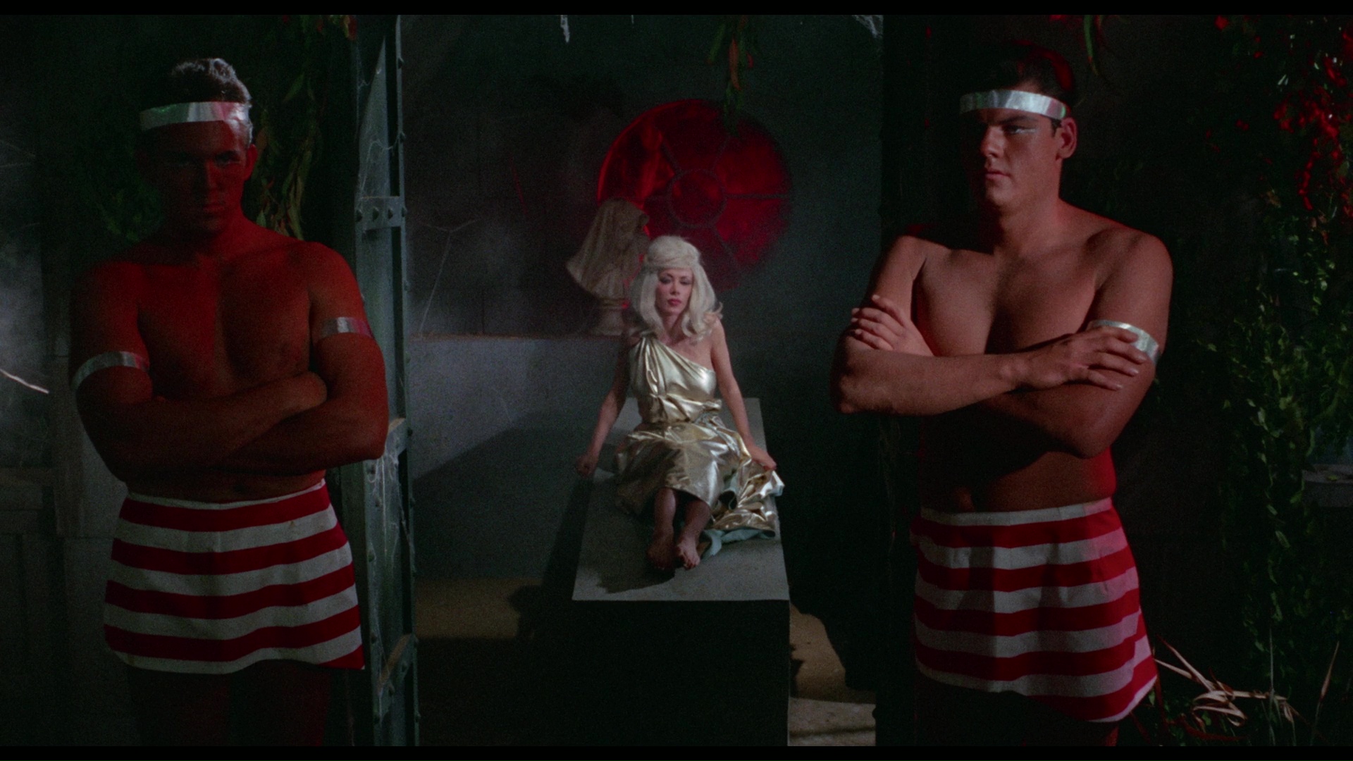Released a few times in theaters over the years including temporary ownership from Crown International Pictures, Orgy of the Dead hit VHS and then DVD from Rhino Home Video (the latter format in 2004). The film has been well preserved over the years and fared quite well in SD; fans may want to hang on to that earlier DVD as it features the theatrical trailer and a video interview with Apostolof (19m51s) about his entire filmmaking career including his plans to mount a futuristic sequel to this film! Talk about a lost opportunity.
