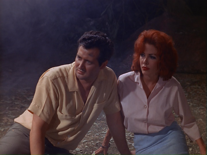 world." From there we meet our two heroes, horror writer Bob (Bates) and girlfriend Shirley (Mantis in Lace's Barrington, credited as Pat Barringer), whose twilight drive to a graveyard takes an unexpected turn when he skids off the