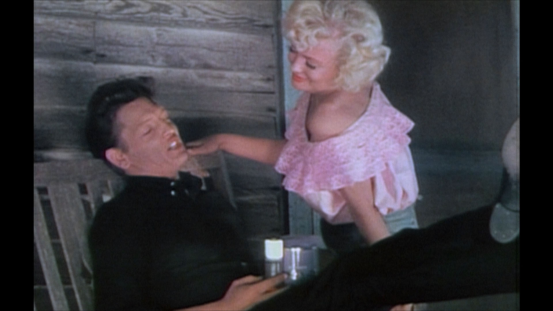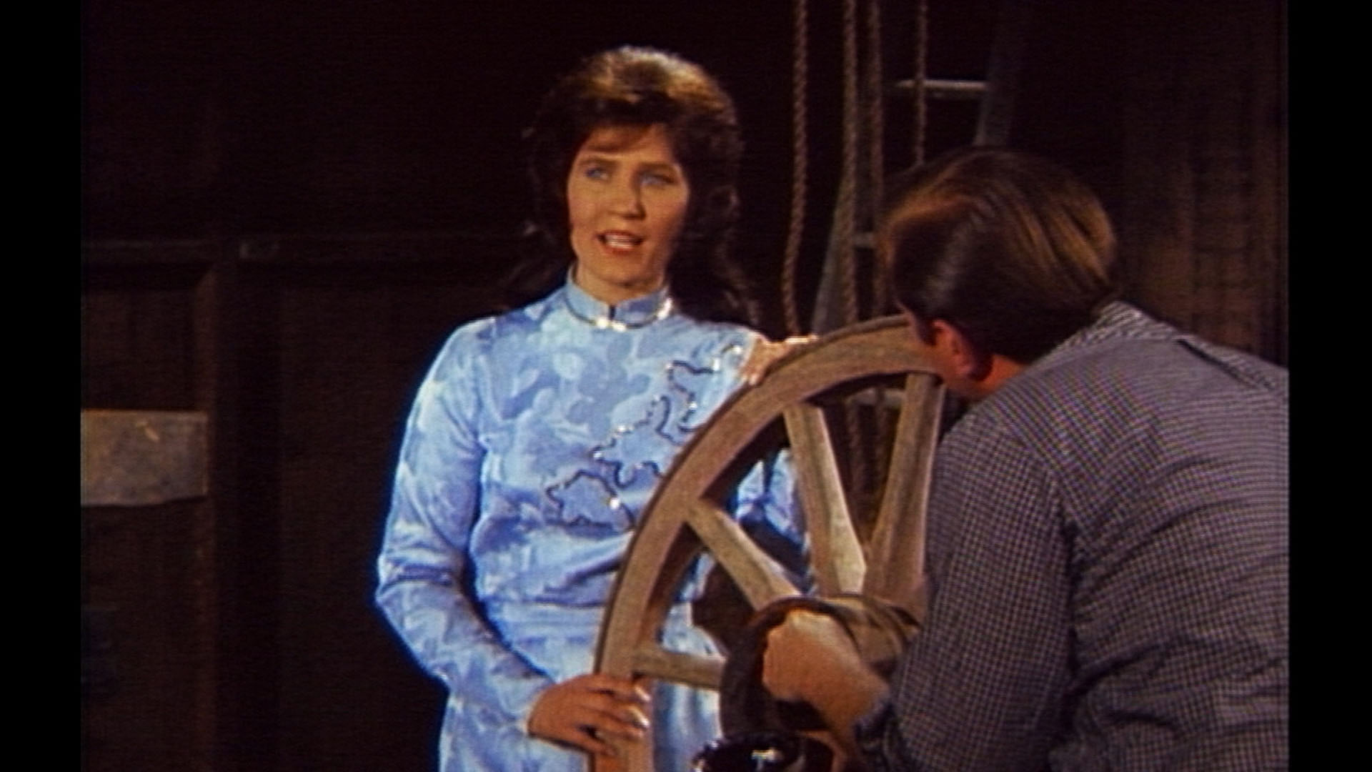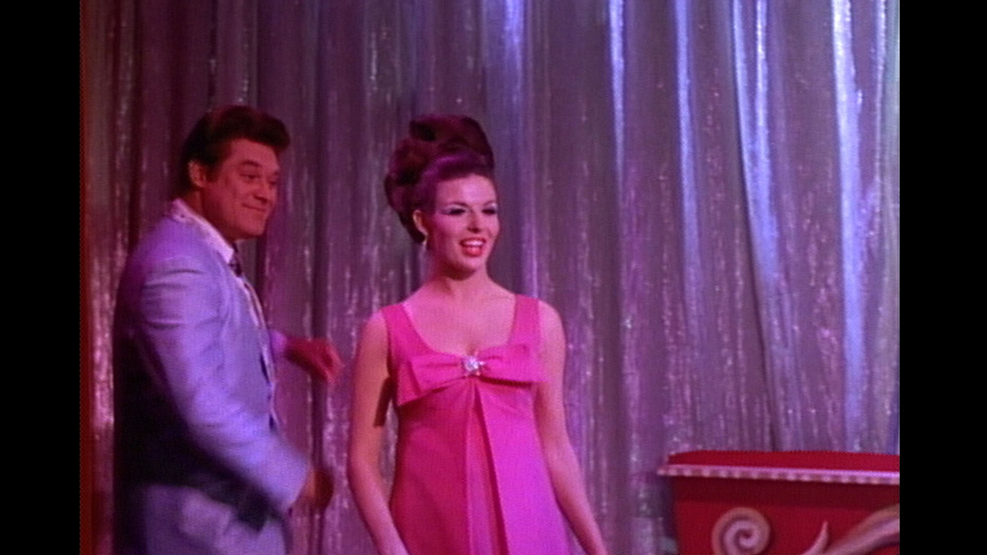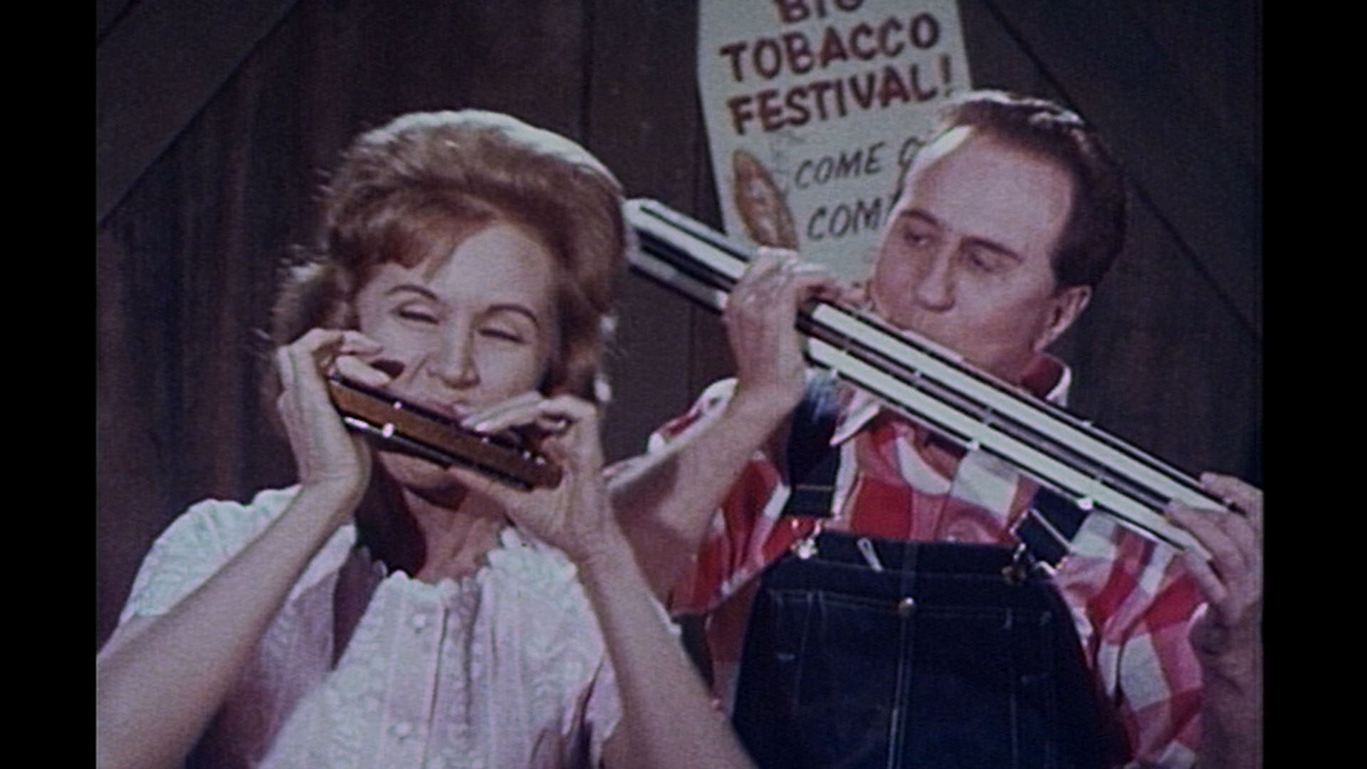 sensibility seen on disc one comes to the forefront on disc two starting with 1965's Forty Acre Feud (85m35s), an entertaining jamboree featuring substantial roles by none other than Minnie Pearl and Ferlin Husky (who's credited as "Simon" but gets called by his real name) among other country personalities doing a song or two like George Jones, Loretta Lynn, The Willis Brothers, and Ray Price. The country-fried fun involves the staging of the Smokey Mountain Jamboree at a time the locals are all buzzing about who's going to run for office as a state representative. (Also, nobody seems to know quite what that job entails.) Mostly though this is an excuse to parade out one musical number after another, and there's a colorful charm here in what amounts to a bunch of country and western Scoptiones stitched together in a way that predates U.S. TV staples like Hee Haw and Barbara Mandrell & the Mandrell Sisters.