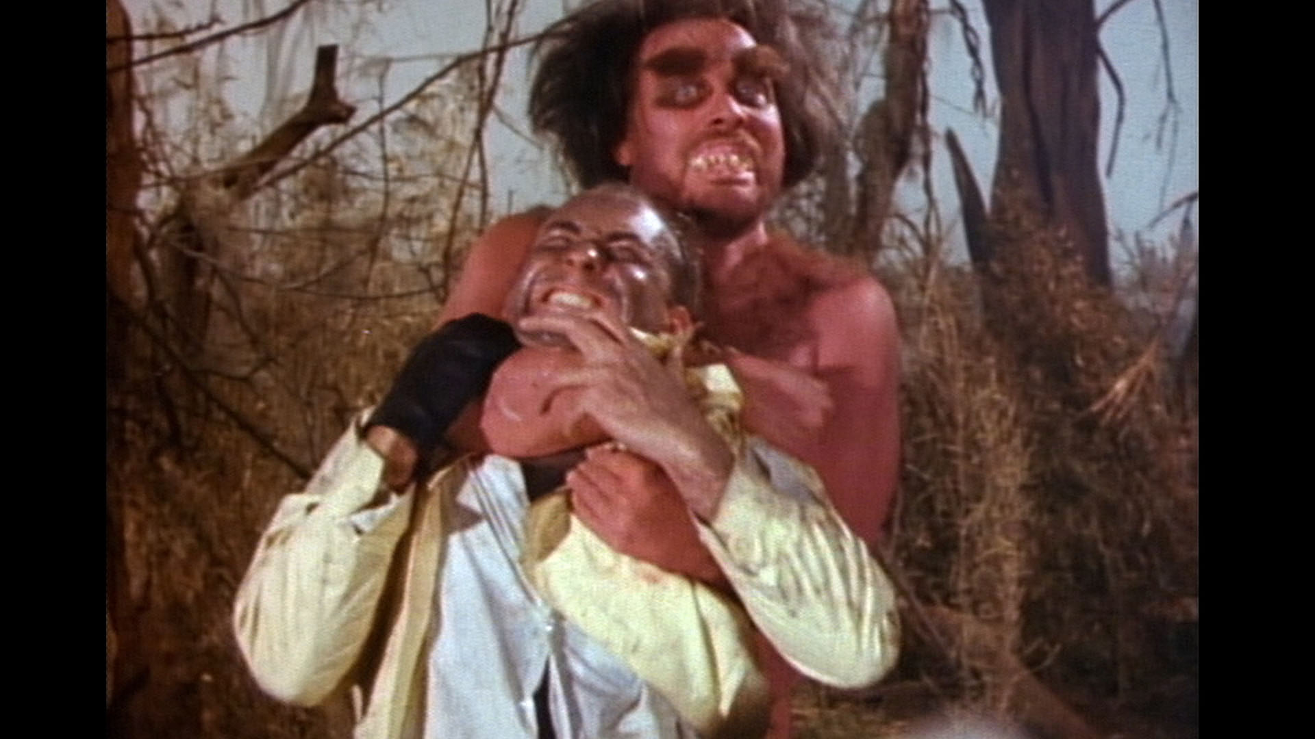 creature feature musical freak-out that marks the feverish climax of the Ormonds' secular filmmaking phase. Local rockabilly performer "Sleepy LaBeef" steals the show here with fake teeth and plentiful fake body hair as a savage swamp critter discovered by some hunters, who naturally drag him into civilization to make a fast buck... by sticking him in New Orleans burlesque shows surrounded by semi-naked women. Complete with quasi-mondo footage, insane strip routines, and the funniest severed arm gag this side of The Brain That Wouldn't Die, this is a true brain-melting experience with all three of the Ormonds getting in front of the camera this time (with little Tim crooning a number and June doing a particularly weird dance routine). A familiar staple on the PD video scene since the '80s, this one looks pretty solid here given the SD source with lots of Crayola-worthy bright colors. On top of that you get an essential audio commentary by McDonough and the film's other big scene stealer, entertainer Georgette Dante, a "queen of the carnival and Las Vegas, exotic dancer, clown, magician, costume designer, director, gangster's moll, and hat maker." Together they provide a rollicking track you really have to hear to believe; they have a great rapport together and have tons of tales about the Ormonds, the carny circuit, New Orleans, and tons more. You don't want to miss this one. Also included are radio spots for all three films.