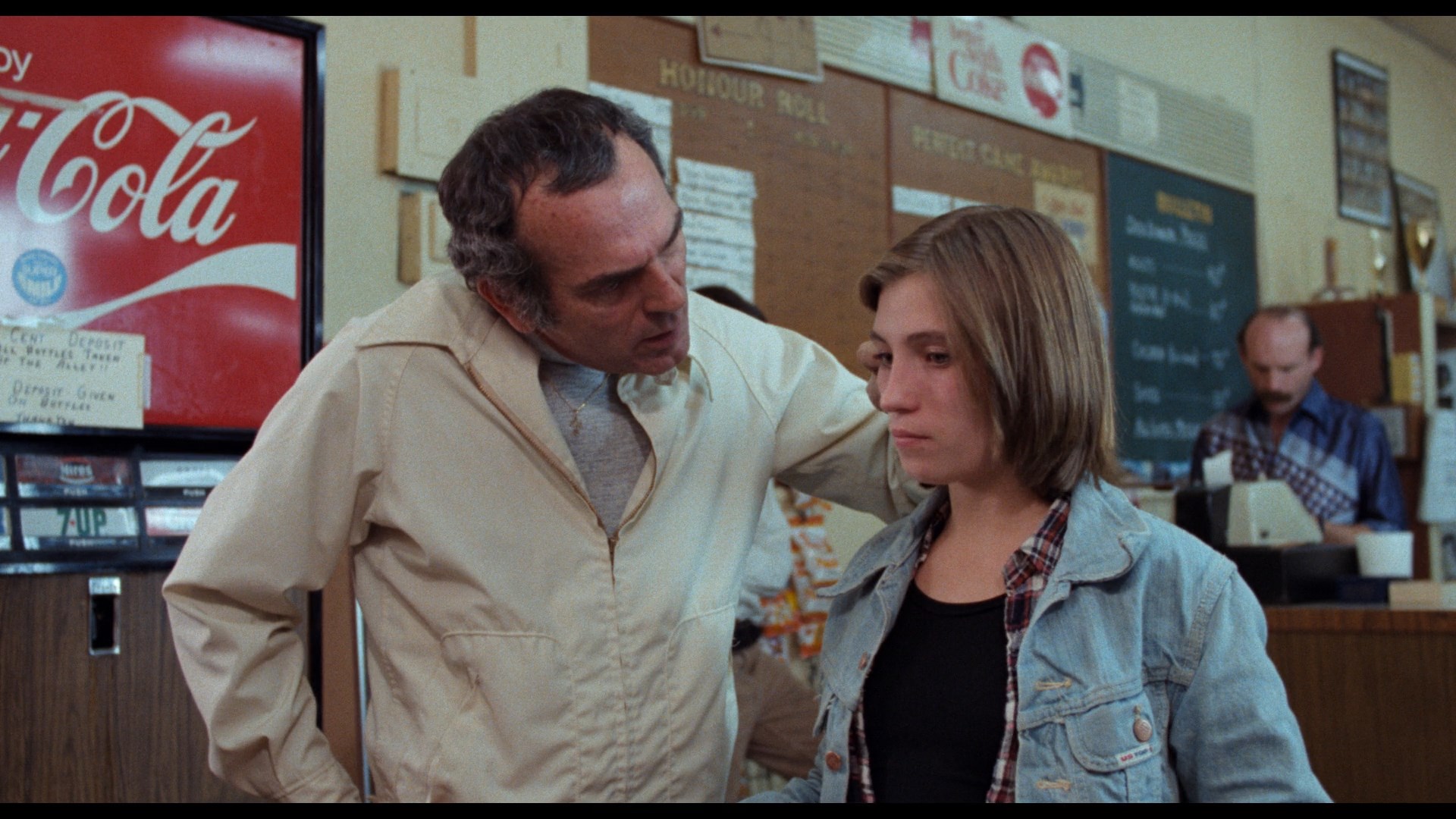 Rennebohm, who gives a thorough account of the film's production along with a reading of it as a commentary about the changing nature of family life moving out to the suburbs and becoming more fragmented (in a sense, a cousin to films like Over the Edge). The next commentary features Kat Ellinger offering her own take on the film, particularly from the punk angle as both a snapshot of the era and an epitaph as well as a reflection of what disaffected youths were going through at the time (including some bemused notes about her own experiences like getting tossed out of clubs for being underage). She also goes into Hopper's personal life before this point, which was turbulent to say the least. Speaking of which, you also get a 1984 video interview with Hopper by Tony Watts (96m52s) pretty much spanning his entire career to that point, with considerable discussion of his directing efforts and his impact on the counterculture. In the video essay Subverting Normality: Linda Manz Comes from Out of the Blue (17m53s), Amanda Reyes (who narrates) and Chris O’Neill offer a perceptive examination of the late actress' impactful performance and provide background about her life and affinity for punk that wound up being integrated into her character. Also included are a 1-minute radio spot with an endorsement by Jack Nicholson, a 4K digital reconstruction of the 1982 U.S. trailer, and a 40th anniversary trailer. However, in beloved BFI fashion you also get some fantastic thematically relevant archival shorts from their archives starting with 1963's COI B&W comic advisory Morecambe and Wise – Be Wise Don’t Drink and Drive (49s) and continuing with 1964's Drink Drive Office Party Cartoon (43s), Jane Campion's excellent 1983 B&W look at female adolescence in the '60s from the perspective of three students entitled A Girl’s Own Story (26m34s), and Carol Morley's 1993 short, Girl (6m52s), using fragmented disembodied shots and voiceover as a young girl chats about her relationship with her parents that takes a very grim turn at the end.