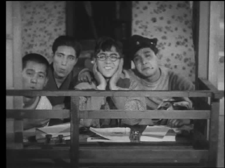 On the other hand, we do get the entirety of 1930's I Flunked, But..., which goes back to the college setting for a look at how exam time swirls students both responsible and careless around our protagonist, Takahashi (Ozu regular Tatsuo Saito), an easily-distracted guy whose four roommates want to buckle down and study while his other friends want to party and c