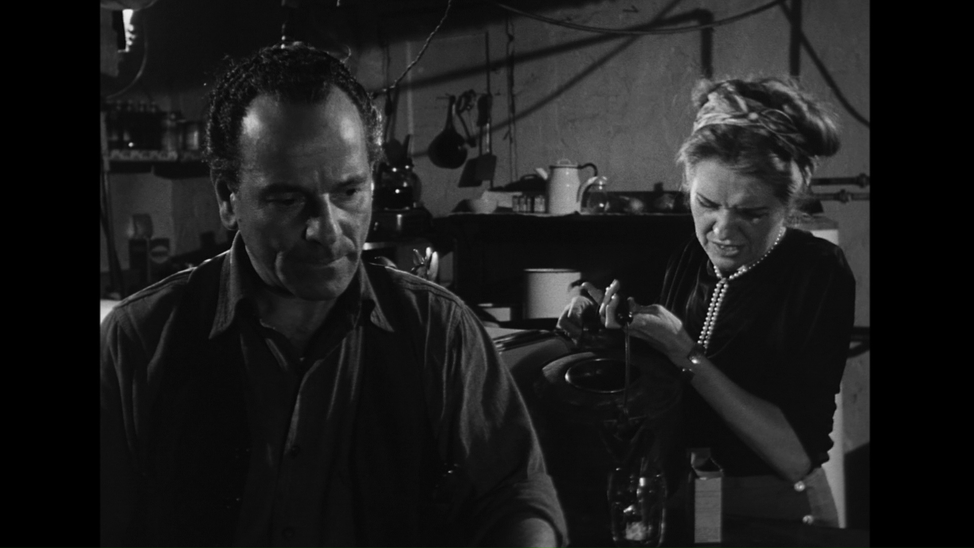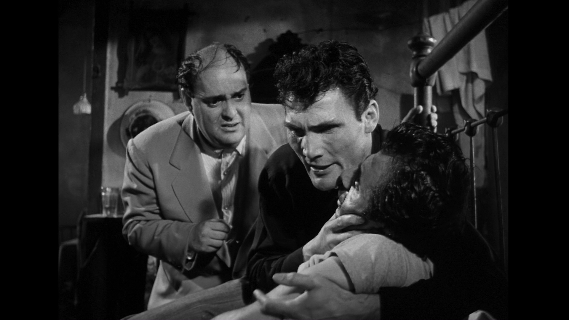 a big budgetary problem that kept this film from turning a profit, but in the long run it’s a wise choice that gives the film a grittiness and urgency ahead of its time. It’s also fun to see the large-framed, tightly-wound Palance intimidating Widmark in what amounts to an updating of the latter’s classic villain role in Kiss of Death, including a memorable fracas under a pier near the end. (Apparently Widmark was no less intimidated by his costar in real life!) Unfortunately the always solid Barbara Bel Geddes is saddled with the film’s weakest material as the obligatory concerned wife, an aspect that gets way more screen time than necessary when we could be spending it out on the streets. Also noteworthy is the sheer weirdness of seeing Zero Mostel, best known for his musical comedy chops, as Palance’s lackey; strangely, his greasy hair and awkward body language make him an ideal casting choice once you get over the initial shock.