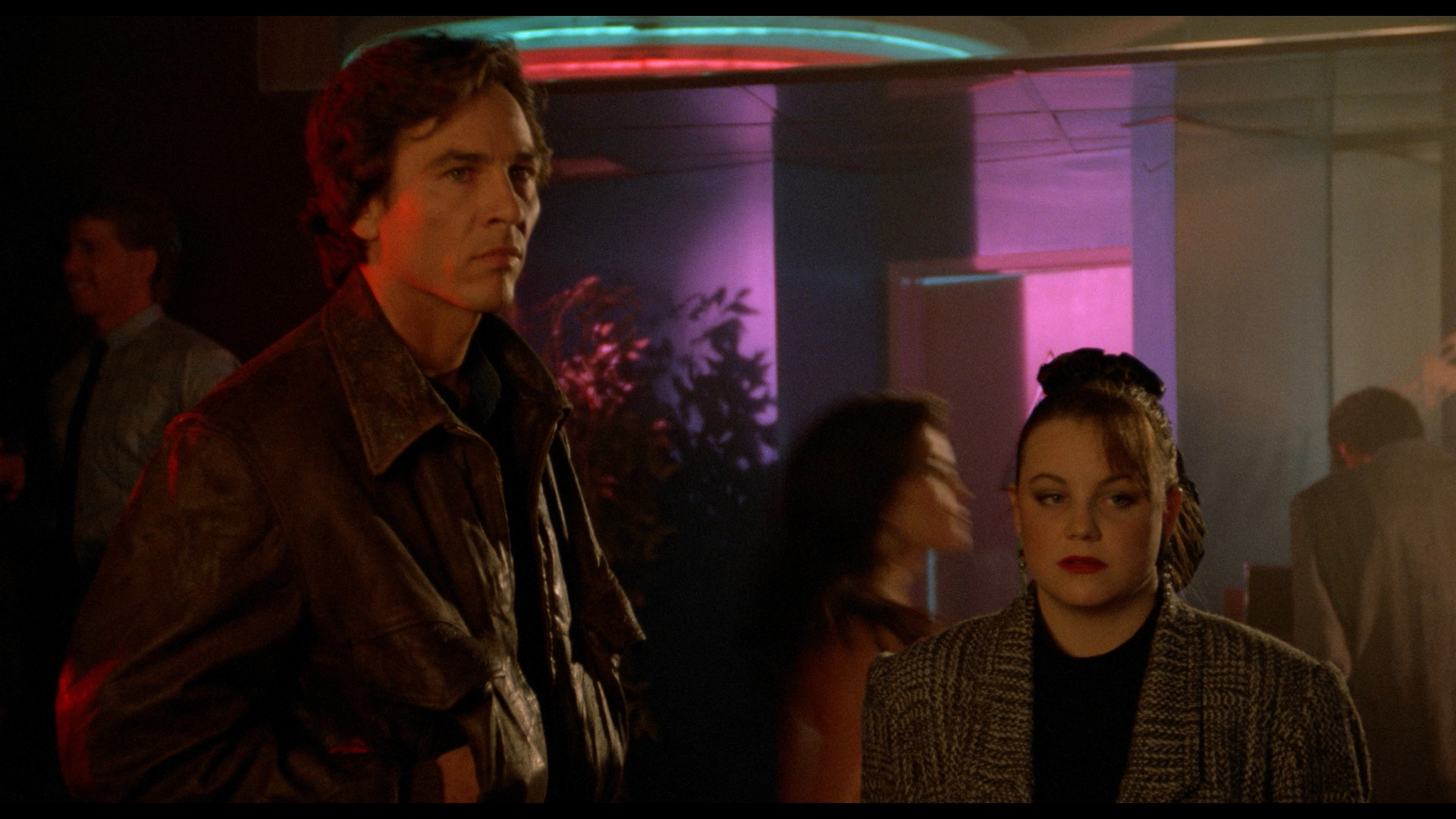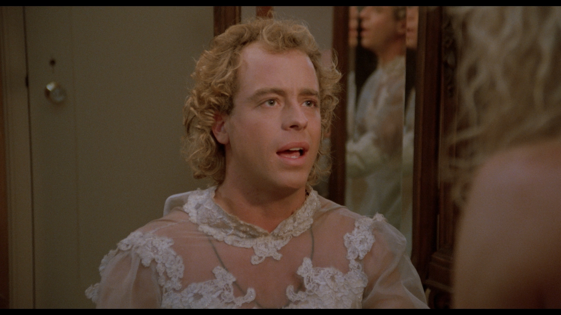 In keeping with its track record, Vinegar Syndrome's dual-format Region A Blu-ray and DVD edition looks really spectacular with a far more intense visual palette than you'd expect from the long unavailable VHS release. The gaudy colors really pop, the restoration of the 1.85:1 framing snaps things nicely into place, and detail throughout is strong with natural film grain visible throughout. The DTS-HD 1.0 mono English track with English SDH subtitles is less impressive given that the original mix was nothing to get too excited about, but it's accurate to the source and fine for what it is. "Party Line Fever"(16m24s) with screenwriter Richard Brandes offers some context for the idea as a sort of proto-Tinder and covers his pathway to this film after relocating to L.A. from Atlanta and going through the acting school scene in town. He also covers his own little role in the film, the unlikely circumstances that led to a tiny theatrical release, and the side venture that led to him modeling leather clothing through two of the married cast members. A fun theatrical trailer is also included, and as usual, there's also a limited edition slipcase option.