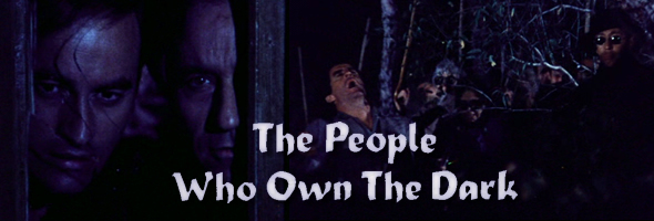 but the story then takes a number of increasingly bizarre and irrational turns: one unhinged survivor taking to crawling around unclothed and lurking in the corner in his pig mask (a scene worthy of Twin Peaks), the spooky gatherings of the titular people outside the house at night, and especially the jolting final five minutes, a truly grim turn of events strangely similar to the finale of the later Japanese horror/gangster film Gonin. It's all a little too disjointed and uneven to call an unqualified success, but there's more than enough creepiness here to recommend this for anyone looking for a potential cult item off the beaten path.