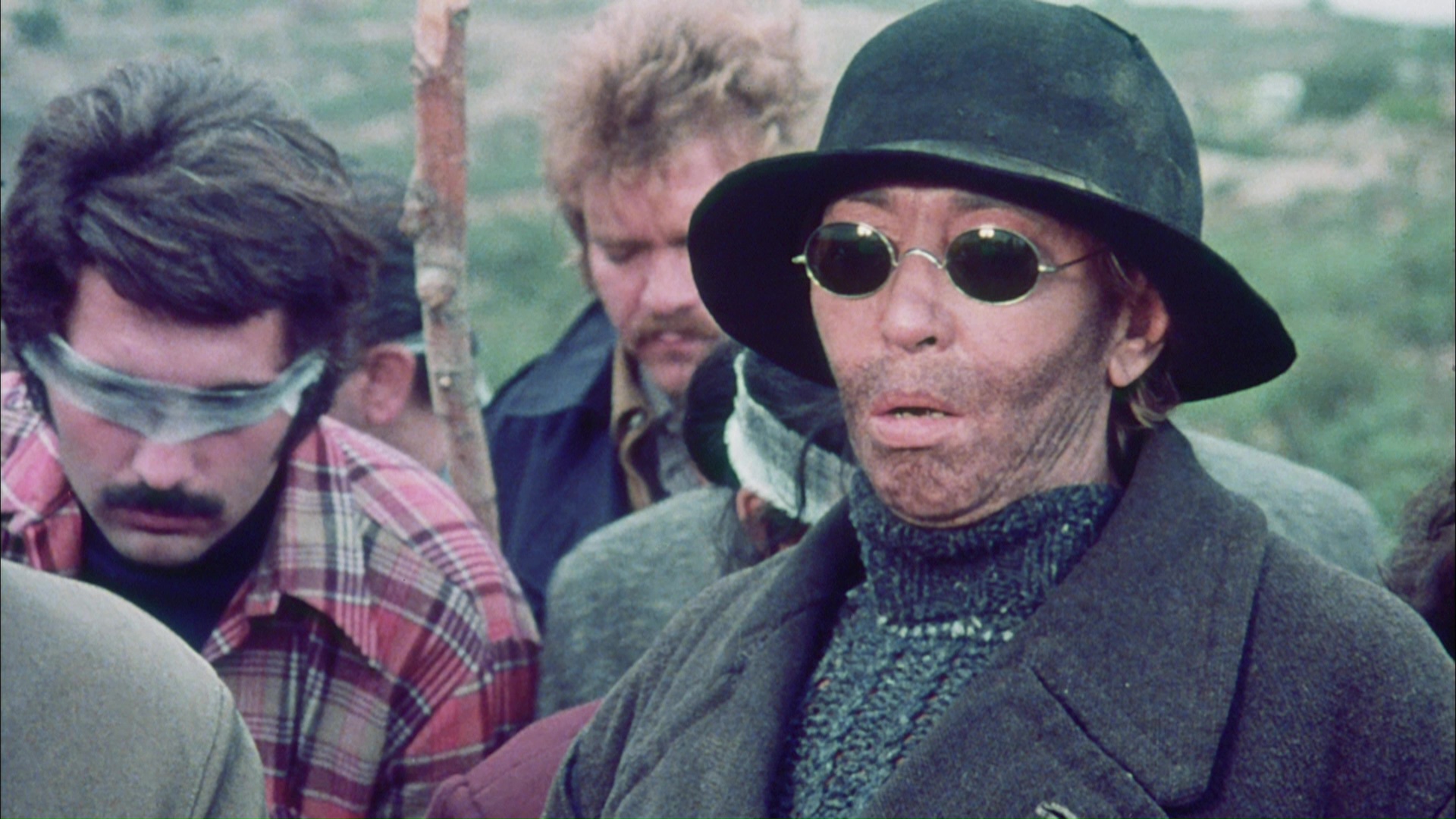 When they weren't busy teaming up for '70s Spanish monster movies like Werewolf Shadow, Vengeance of the Zombies, and Dr. Jekyll and the Werewolf, actor Paul Naschy and prolific director León Klimovsky turned out this peculiar and strangely haunting horror/sci-fi hybrid inspired in equal parts by I Am Legend and The Day of the Triffids. Naschy actually takes on more of a supporting role here as Borne, a macho hunter type who joins a bunch of debauched upper class businessmen and their female companions for a weekend of fun and games in the countryside. That includes gathering in the basement to put on creepy pig masks and parade the women around in see-through gowns for some kind of kinky swingers' ritual, but they're cut short by an earth-rattling explosion above that sends a blind pigeon crashing to the floor. The maid shows up blind, too, with completely white eyes, and soon they realize that some kind of apocalyptic attack above ground has rendered most of the population dead or completely sightless. As the party hounds try to gather munitions, the blind locals become bent on irrational vengeance and start to gather outside the house as those inside also find their sanity beginning to break.