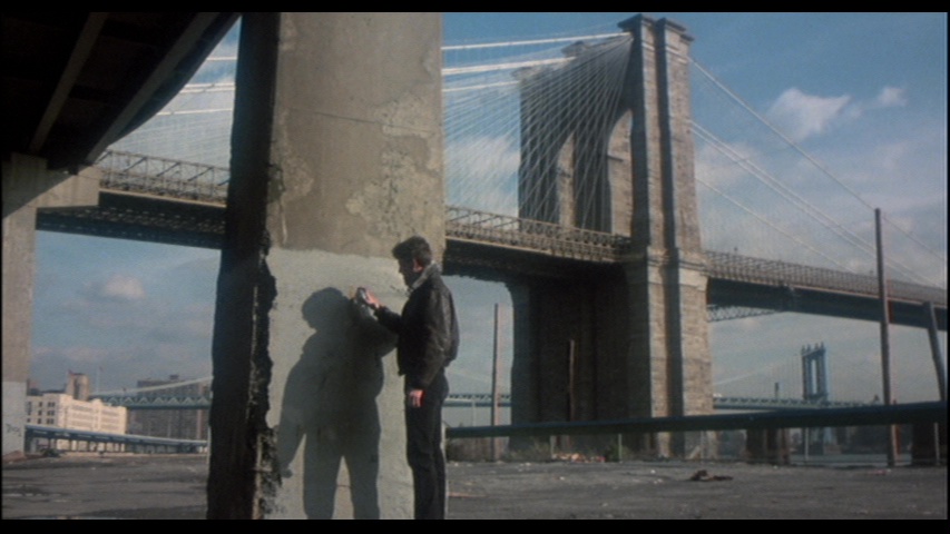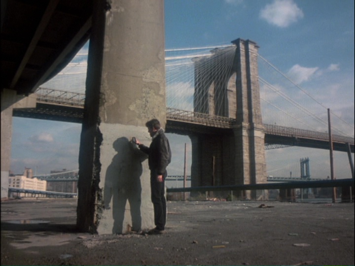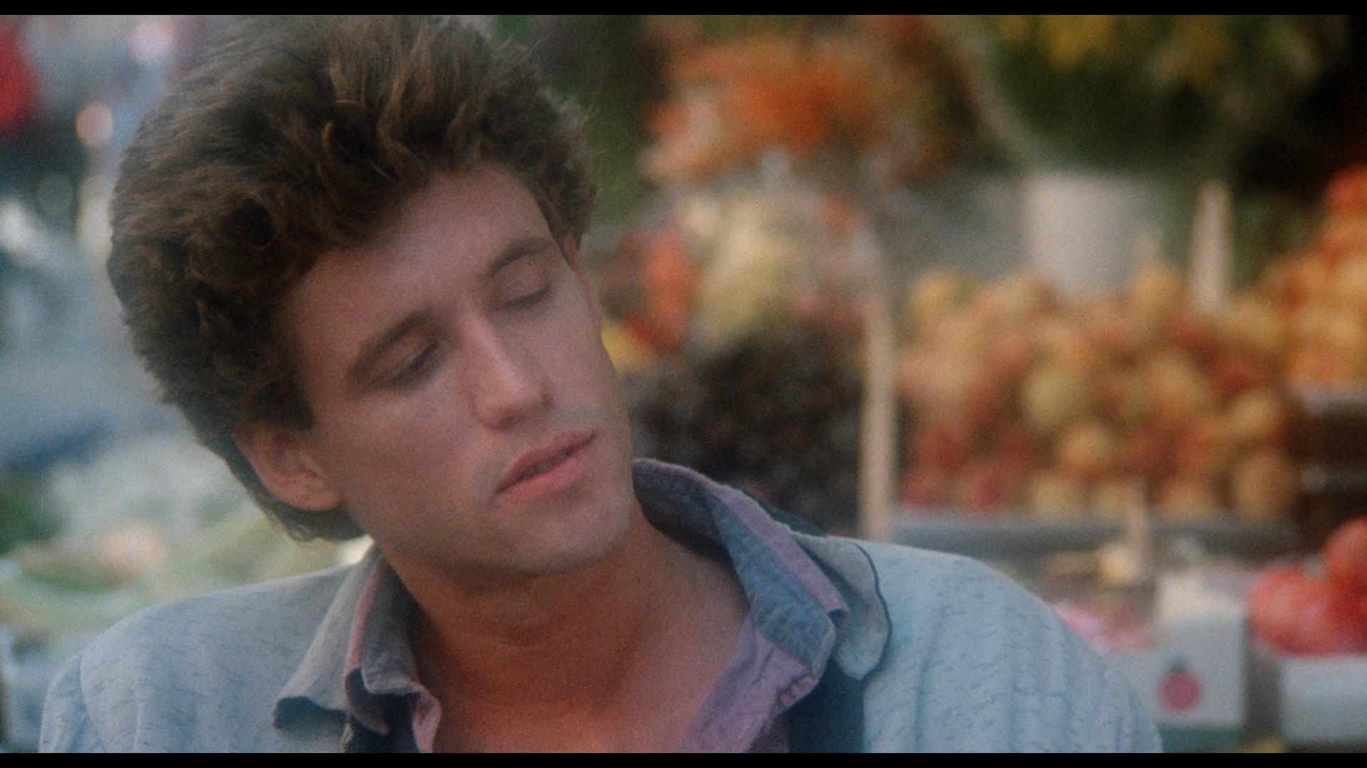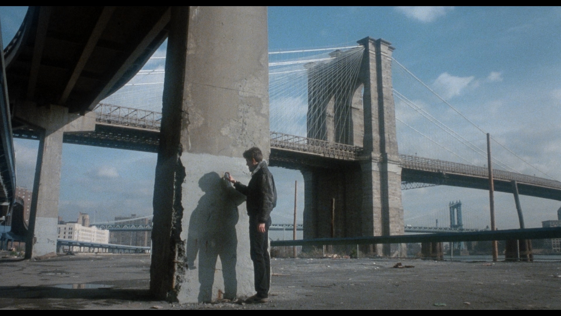 more information on both sides compared to both framing options on the MGM disc and looks nicely framed throughout, with more vertical information visible than the earlier 1.85:1 option as well. (See below for a few comparisons.) The DTS-HD MA English 2.0 mono track also sounds good considering the very modest nature of the original source, which features some pretty sloppy sound editing at times. Optional English SDH subtitles are also provided. As for extras, in "A True Artist" (7m46s), Carlisle speaks over video conferencing (due to the current pandemic of course) about coming on this film just after his biggest cult hit thanks to an acting class, the extremely low budget, the way Cohen brought out a connection with her young costar that wasn't possible on the set, and her more ongoing pursuits as an artist. Then "A Shadow in the City" (9m13s) is essentially the full Cohen interview conducted for the documentary King Cohen in which the now deceased filmmaker discusses the making of this film as a simple project back in New York as a two-picture deal with Hemdale, including extensive location coverage that required him to memorably jump in front of the camera during a crowd scene that threatened to get out of control. A brief promotional gallery (38s) is also included; as with Vinegar Syndrome's other MGM releases, the trailer is absent here but can be found on the older DVD if you're a completist.