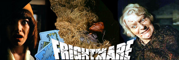 Frightmare first appeared on U.S. video under the title Frightmare II, to avoid confusion with a later unrelated American horror film. It was later reissued as Once Upon a Frightmare, and both transfers left quite a bit to be desired. The print used for all extant DVD editions is a marked improvement in every respect and actually looks quite colorful, a welcome change from the gray, blearly looking VHS editions. Note the beautiful saturation of the colors during the opening credits, which come as a visual shock after the lengthy monochromatic first few minutes. The open matte, full frame presentation on the Euroshock/Image disc reveals all of the visible film area, leaving a little more headroom than usual but aesthetic enough all the same. This being a '70s British film, grain and unstable blacks crop up here and there, along with some fleeting and minor instances of film scratches, but the pros far outweigh the cons here. The mono audio sounds fine, approximately the same as the earlier versions. The Media Blasters and Anchor Bay UK editions present the original theatrical matted edition and look very nice, also tossing in a Walker interview and commentary as well as trailers into the mix.