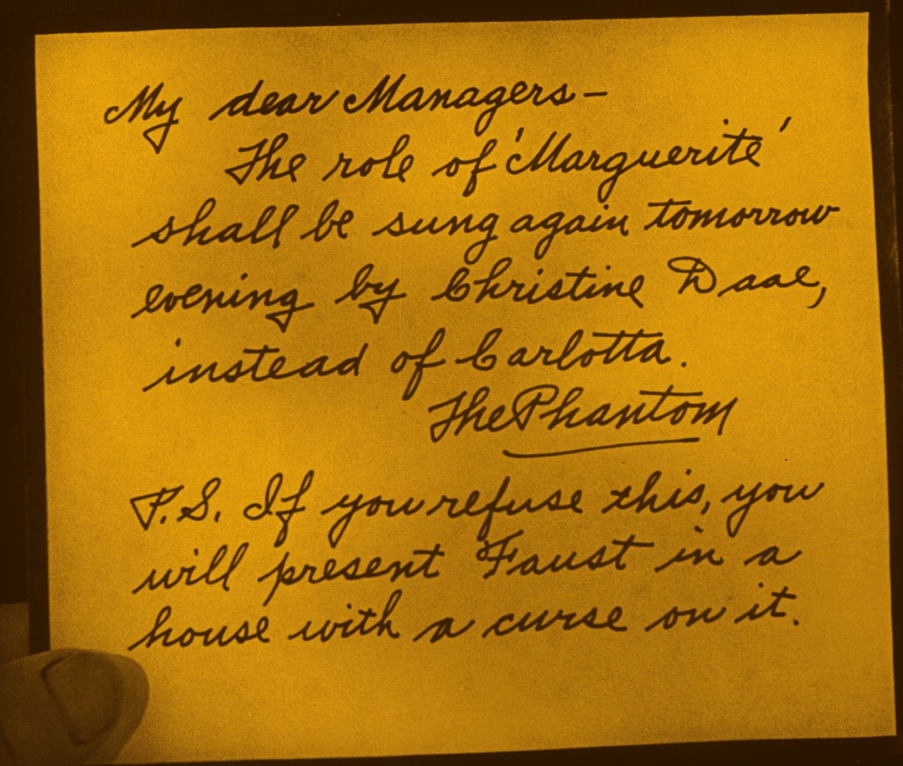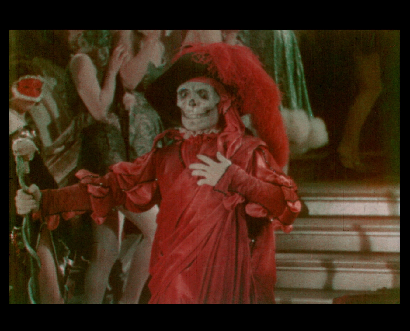 With the advent of sound, a talkie version was prepared complete with reshoots and alternate sequences, not to mention a shorter, reworked silent edition, the one surviving in the best quality today. Surprisingly, one aspect of the film that has also endured is its wonderfully gimmicky use of two-strip Technicolor, utilized in the masquerade ball sequence with Erik crashing in dressed as the Red Death. Hand tinting was also used in the following sequence with a red-caped Erik perched at the top of the opera house, though this touch is lost in most editions.