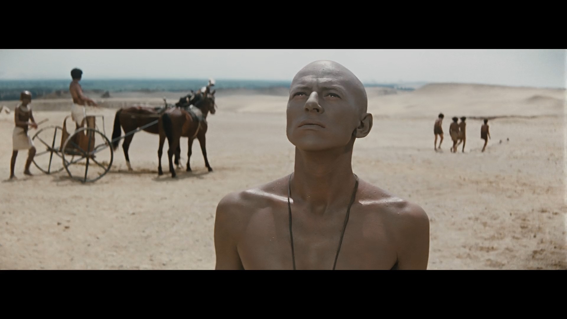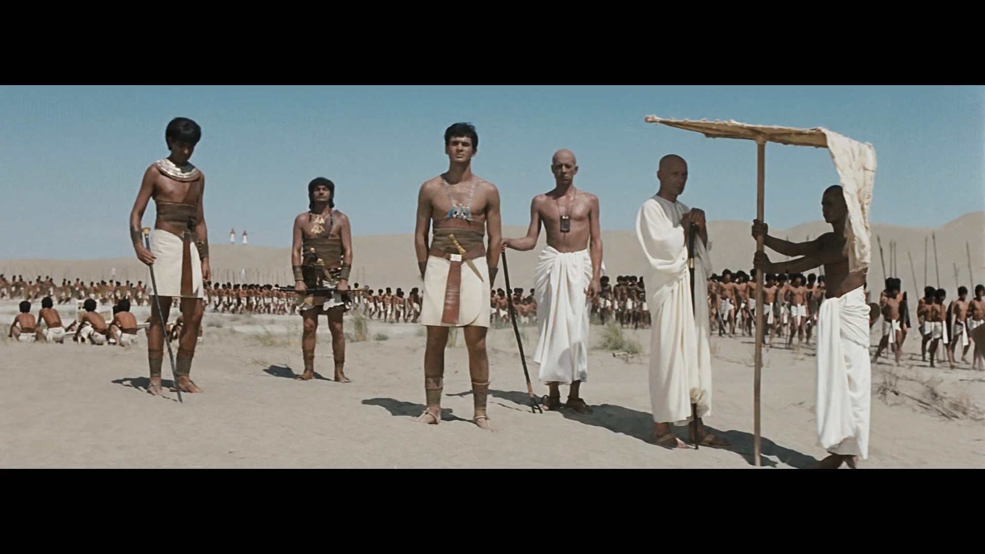 periods and countries dealing with authoritarianism. If that sounds too heady, it's also a voluptuous feast for the senses with multiple scenes that will burn in your memory, including seamless stitching together of breathtaking Polish studio sets and location footage (a lot in the Soviet Union). The last 20 minutes along is a major cinematic tour de force, and while the ambiguous final note might be surprising on a first viewing, it's a clever way to wrap things up and point to the fate of Egypt we all know from our history books. Also noteworthy is the memorable opening shot of two scarabs struggling with a ball of dung, a symbolic gesture that could have made an impression on Sam Peckinpah given its similarity to the later (and much crueler) openers for The Wild Bunch and Straw Dogs.