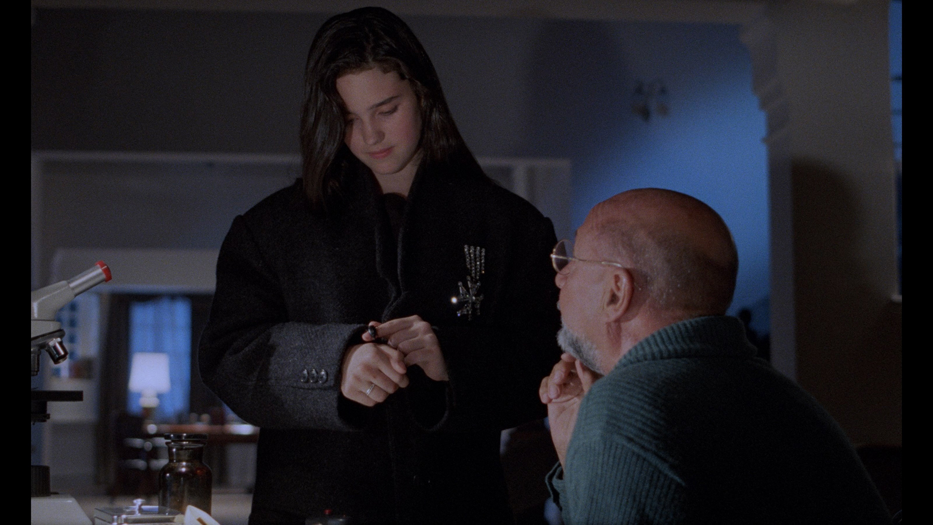 On the surface, Phenomena is a return to Suspiria territory with a virginal American girl, Jennifer (future Oscar winner Connelly), arriving at a boarding school for girls in Switzerland. Her awkward habit of sleepwalking gets her into trouble on her first night when she wanders out of her room and witnesses the murder of a schoolmate, and on top of that, it appears she has a telepathic connection to insects. A local Scottish entomologist, John McGregor (Pleasence) tells Jennifer about a string of bizarre serial killings in the area, and with the aid of Jennifer's uncanny powers, they set out to find the murderer.
