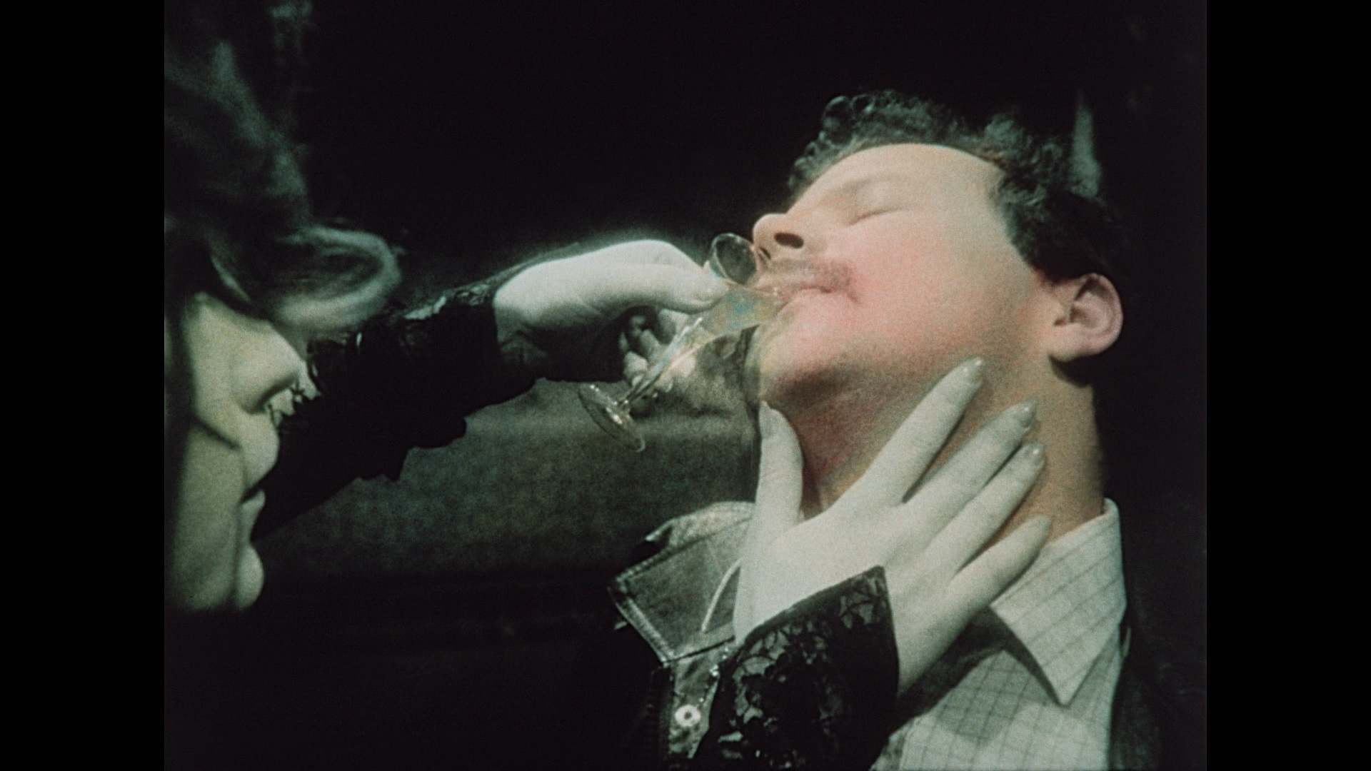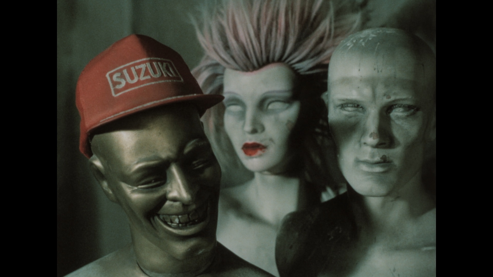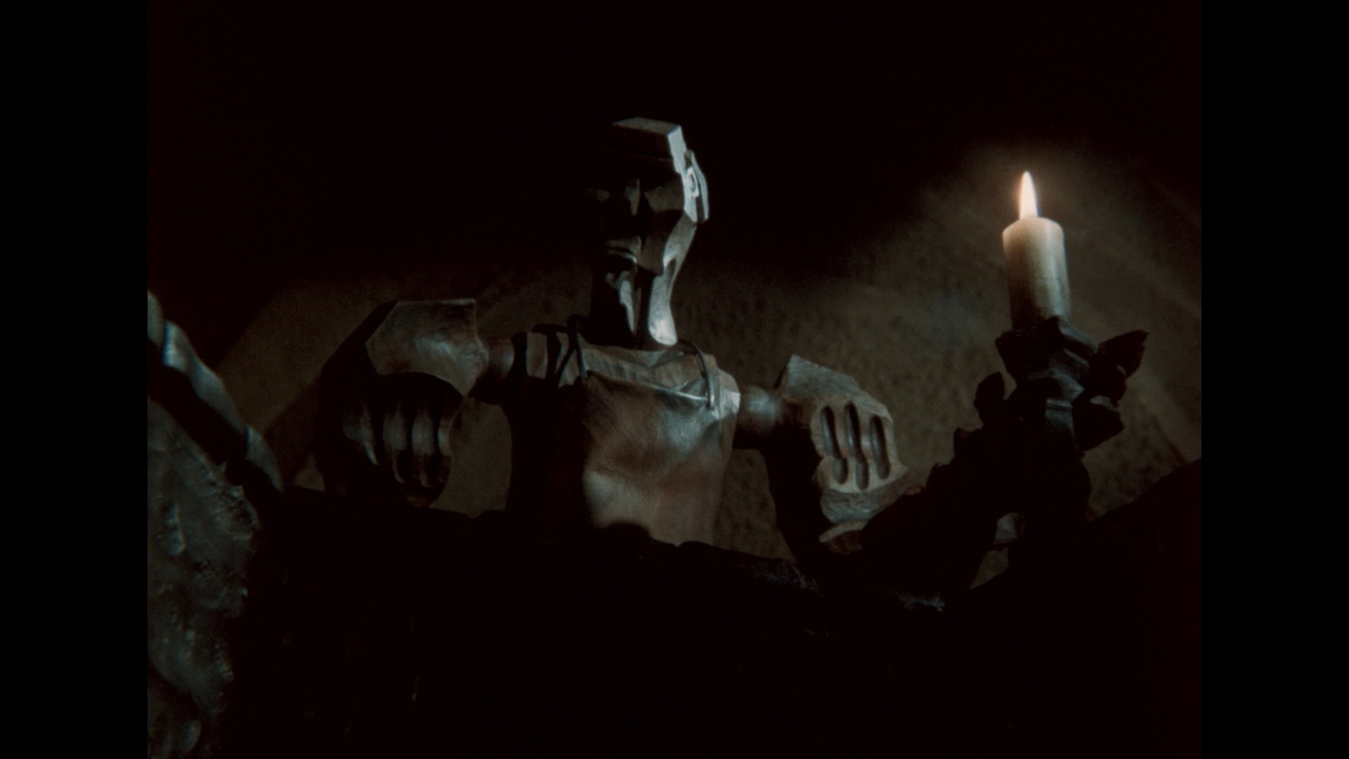 apartment design takes shape before your eyes. Fans of folk horror will definitely get a kick out of 1983's A Ballad About Green Wood (10m39s), an ode to nature with animated firewood logs spending the seasons summoning and unleashing a creature with feathered wings before the cycle begins again. The real standout here for horror fans though is 1987's The Last Theft (20m58s), which uses a wild bleached-color technique for a spooky vignette in which a thief breaks into an apartment only to find himself at the mercy of a collection of supernatural adversaries. Finally in 1989's The Club of the Laid Off (25m14s), a collection of seemingly abandoned mannequins in various states of pop culture adornment come to life in a creepy imitation of daily human routines. The Vanished World of Gloves is carried over here as well to make marathon viewing easier, and you also get two substantial new video extras starting with a new Barta interview with Bartok and Kovarova (76m12s) speaking at length about his short film work including his first break into working as a director, the venues for his shorts, the various innovations he came up with along the way, and the ideas about society he wove into them including some obvious thoughts on state-sponsored living conditions. You also get a new visual essay, "Pushed to the Margins" (29m40s), a conversation by Kovarova and Hames edited by Ryan Verrill with a thorough tour through the short films using clips to show how the filmmaker's style changed over the years using the camera to push his cinematic language in new directions with each effort. As usual, the release is available as a standard edition or a limited 2,000 unit one featuring an exclusive slipcase and a lovely 60-page book featuring essays by Jonathan Owen, Walter Chaw, and Kovarova about the historical period covered by these films, their commentary on human behavior and social structures, and the tactile nature of the animation that gives them a fascination and charm that will never fade.