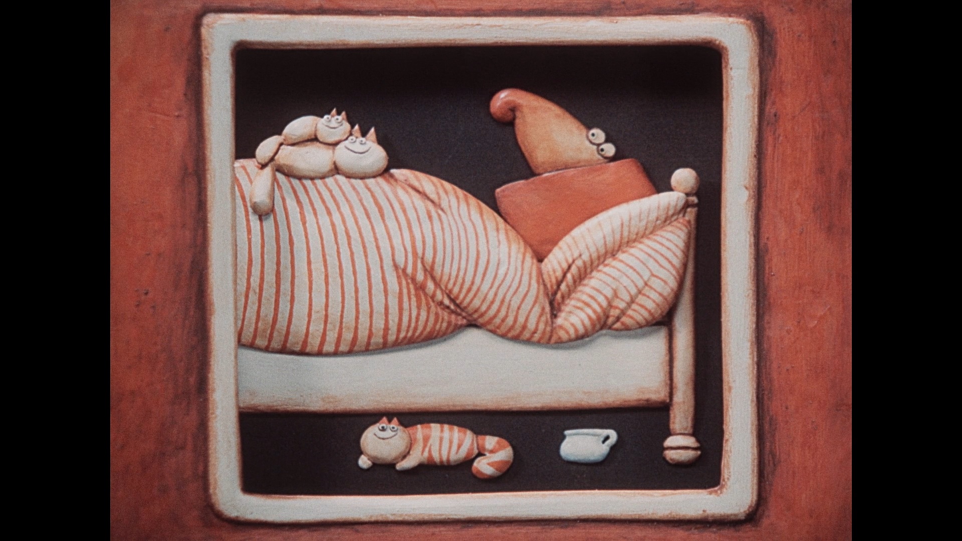 for young kids but will entrance animation fans of just about any other age. From the outset what really impresses here is the sense of scale with the angular characters often dwarfed by what seem to be massive, stylized sets, an illusion Barta and his fellow craftsmen went to great pains to achieve. Apart from film festival play, this film and much of Barta's other work was very difficult to see for the average viewer until a 2006 DVD release from Kino Lorber as part of its relationship at the time with Kimstim, Jiří Barta: Labyrinth of Darkness, which featured this film and eight additional shorts in okay standard def presentations.