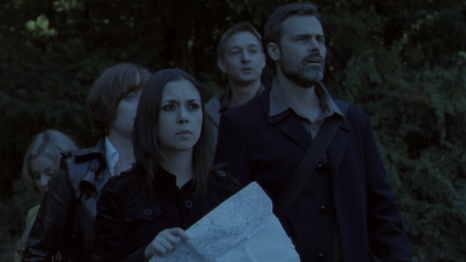 Both editions contain an audio commentary with Gregory and producer Derek Curl, who fill up every second with loads of details about the production. Everything from the location shooting (in very cold Connecticut) to the effects shooting to the casting is covered in great detail, and it also serves as a pretty good primer on how to shoot a low budget horror feature these days. The first featurette, "A Visit to Plague Town" (28m35s), features all of the major cast members, Gregory, Curl, and several crew members offering a more general overview of the production, augmented with some nifty on-location footage. It's especially fun seeing the younger actors in make-up getting ready for their scenes, which look a lot less intense from a different perspective. Next up is "The Sounds of Plague Town" (16m9s) with Raskin and the sound effects artists talking about the effective soundscape of the film, with the music and foley effects often working in tandem during the standout horror sequences. Finally you get the original theatrical trailer, which does an adequate job of conveying the tone but is cut exactly the same as every other cookie-cutter horror trailer around that time. Don't let it put you off; the