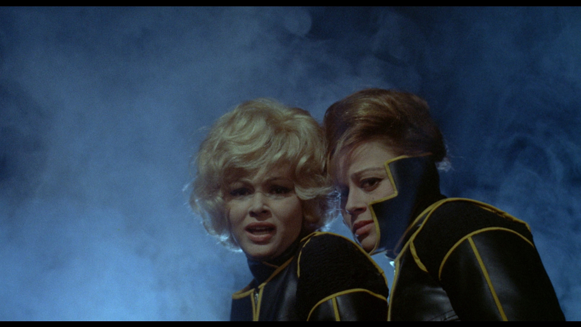 transfer appeared on laserdisc through Orion and Image, doubled up with Curtis Harrington's endearingly bizarre Queen of Blood (which shares two similar alternate titles, Planet of Blood and Planet of Vampires, with those given to Bava's film). After vanishing for a few years, Planet went through the restoration process at MGM, after which it surfaced in a dramatically improved widescreen but non-anamorphic transfer on a 2001 DVD release. The ads claimed the film was shot in "Colorscope," though this seems to be just standard hard matting at 1.85:1 like