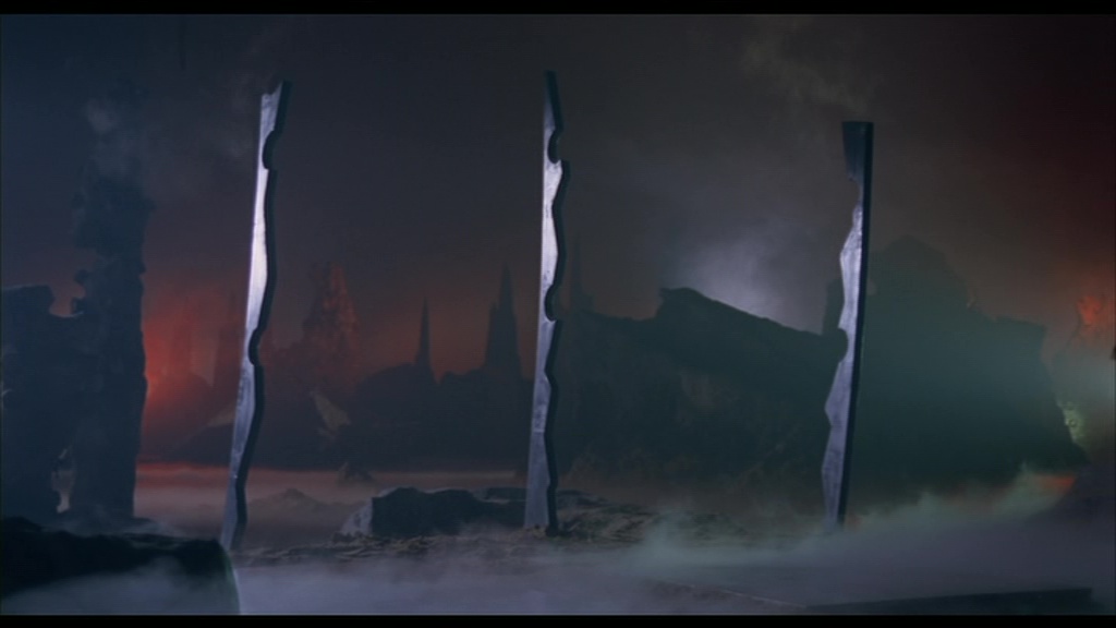 most of Bava's other titles from the same period. The original, more subdued theatrical score was reinstated along with the hellish luminous quality sorely missing from previous editions. The film runs about two minutes longer than the 86-minute HBO print, confined to some more character exposition and footage of actors wandering through the mist. The disc also includes the amusing U.S. theatrical trailer, which makes the film look like a particularly unhinged episode of Star Trek and slaps the title card over two cartoon bombs for no apparent reason. The same elements were also used for a higher resolution German 16x9 DVD release as well as occasional HDTV screenings. For a fascinating variant, fans could also hunt down the Italian DVD, which retains Bava's original slightly longer cut of the film (more dialogue and a slight bit of alternate violence involving one character being shto) in Italian with optional English or Italian subtitles. The opening and closing credits here play out completely over black with the creepy ambient score gurgling underneath. Picture quality is okay but far more brown and yellow than any other version out there. Don't expect much in the way of extras, though; all you get is a photo gallery and a look at the "2005 Venice Cult Film Festival."