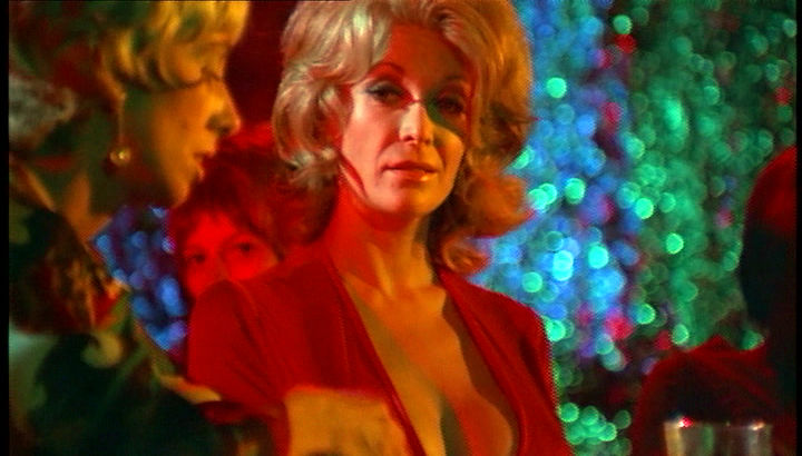 The one element that really puts this over the top from the opening frames is leading man Peter Carpenter, a Tom Jones lookalike with a singularly strange onscreen presence who made his debut as one of Erica Gavin's conquests in Russ Meyer's Vixen and went on to headline a trio of unique trash classics in the early '70s: this film, Blood Mania, and Love Me Like I Do. His co-star from the latter film, Dyanne Thorne, returns here and of course went on to sleaze infamy in Ilsa, She-Wolf of the SS and its sequels. The fun starts as lounge singer Tony Trelos (Carpenter) belts out a song over the main credits in an eye-searing red fringe outfit, only to wake up on the beach screaming from his own performance. His hysteria is cut short by a passerby, buxom Andrea Hillard (Thorne), wearing the world's first