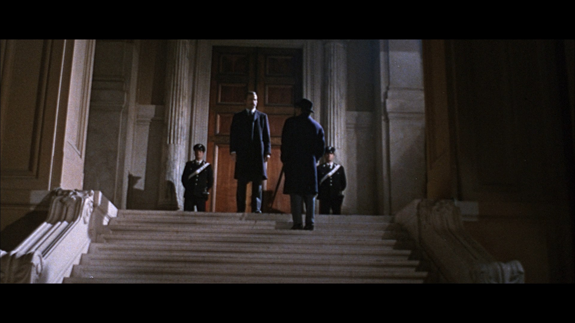 The 2026 Radiance Confessions of a Police CaptainFilms Blu-ray released in both the U.S. and U.K. comes from the same excellent 2K presentation as the German disc, featuring 1.0 mono English and Italian audio with optional English SDH or improved English-translated subtitles for their respective tracks. It's a bit of a toss-up which version to watch as the actors were almost entirely performing in English but with more care given to the mixing and dynamic nature of the Italian option. Try 'em both. The extras kick off with a new interview with Nero (29m15s) about his first job for Damiani, their films together, the intended casting of Ben Gazzara in the role that fortuitously went to Balsam instead, the moral lessons he learned from his Carabiniere father, the public response to this film, and more. Then you get an interview with actor Michele Gammino (22m47s) about making his debut with this film after working for Damiani as a dubber, the challenges of shooting in English, the importance of this film on his career, and the collaborative work he enjoyed with Balsam. An interview with editor Antonio Siciliano (26m49s) goes into the tweaks the film underwent in the post-production process, the cadence he established in key scenes like a lengthy confrontation between the two leads, and the conditions of working for companies like RAI and notable directors and producers of the period. Finally an insightful analysis of Ortolani's score is provided by Lovely Jon (31m) who contextualizes this within the maestro's output and the crime and jazz music idioms of the time, as well as notable collaborators like the members of I Marc 4. A 79-image gallery is also included, and the disc comes with a limited edition booklet which was announced as featuring an essay by Mark Shiel but instead has two archival Damiani interviews, "Justice Is Never Neutral" with Gerard Langlois and an untitled one with Guy Braucort, both from 1972, covering American noir, the relationship between the law and organized crime, and more.
