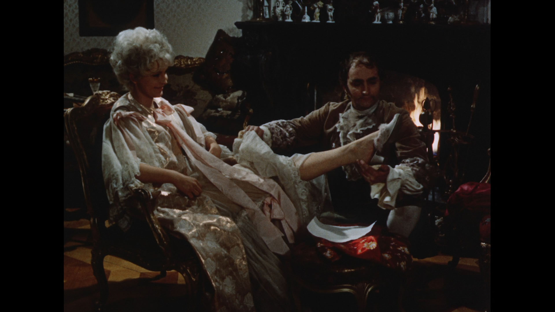 political purposes, Chaim is attended to by a mute servant girl (Novotná) who becomes the object of his romantic obsession -- with ironic results as the elder rabbi desperately tries to avoid God's wrath. Then in "Bread Slippers," directed by Evald Schorm, a manipulative bisexual Countess (Tuszyńska) with a habit of driving men to their doom goes a step too far when she poses an impossible baker costume challenge to her latest suitor, leading to his suicide. The ball they intended to attend together materializes when a shoemaker fulfills her wish only too well, leading to a macabre party in an eerie house. Finally in the black comedy pop musical(!) "Poisoned Poisoner" by Milos Makovec (who also helmed the framing story), a medieval tavern owner (Dvorská again) and her attendant bump off a string of guests including a knight and a friar to pilfer their belongings. As the physical indulgences mount, so does the risk of karma coming back around.