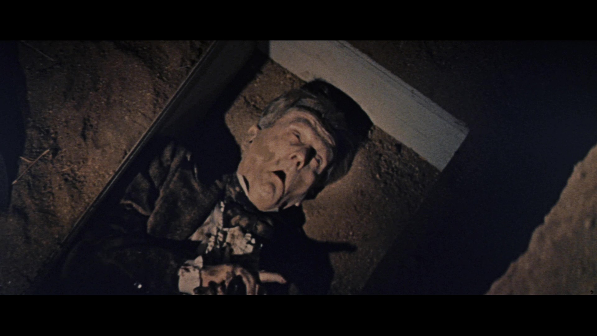 Fortunately the 2015 Blu-ray release from Kino Lorber does improve quite dramatically as it fixes those technical issues and offers the best presentation of the film to date. The 1080p image looks very nice with the rusty, morbid color schemes presented with their dark, dank mood fully intact, and the source material still bears the international full title at the beginning rather than the abbreviated one often seen on home video (which drops "The" from the title card). The DTS-HD MA two-channel mono track sounds excellent as well. Carried over from the DVD are the theatrical trailer and a 9-minute interview with Corman about the circumstances behind the making of the film including the bizarre AIP situation. New to this disc is a fun 9-minute HD video interview with filmmaker Joe Dante, a very articulate expert on the Corman-Poe output, who does a fine job of putting the film in its particular place and pointing out its numerous virtues among its more famous companions. Also Dante-related is the version of the trailer presented at his site Trailers from Hell with Corman himself appearing for a thumbnail discussion of the highlights from the production and its place in his career at the time. Very highly recommended for classic horror buffs who might have overlooked this atmospheric little gem in the past.