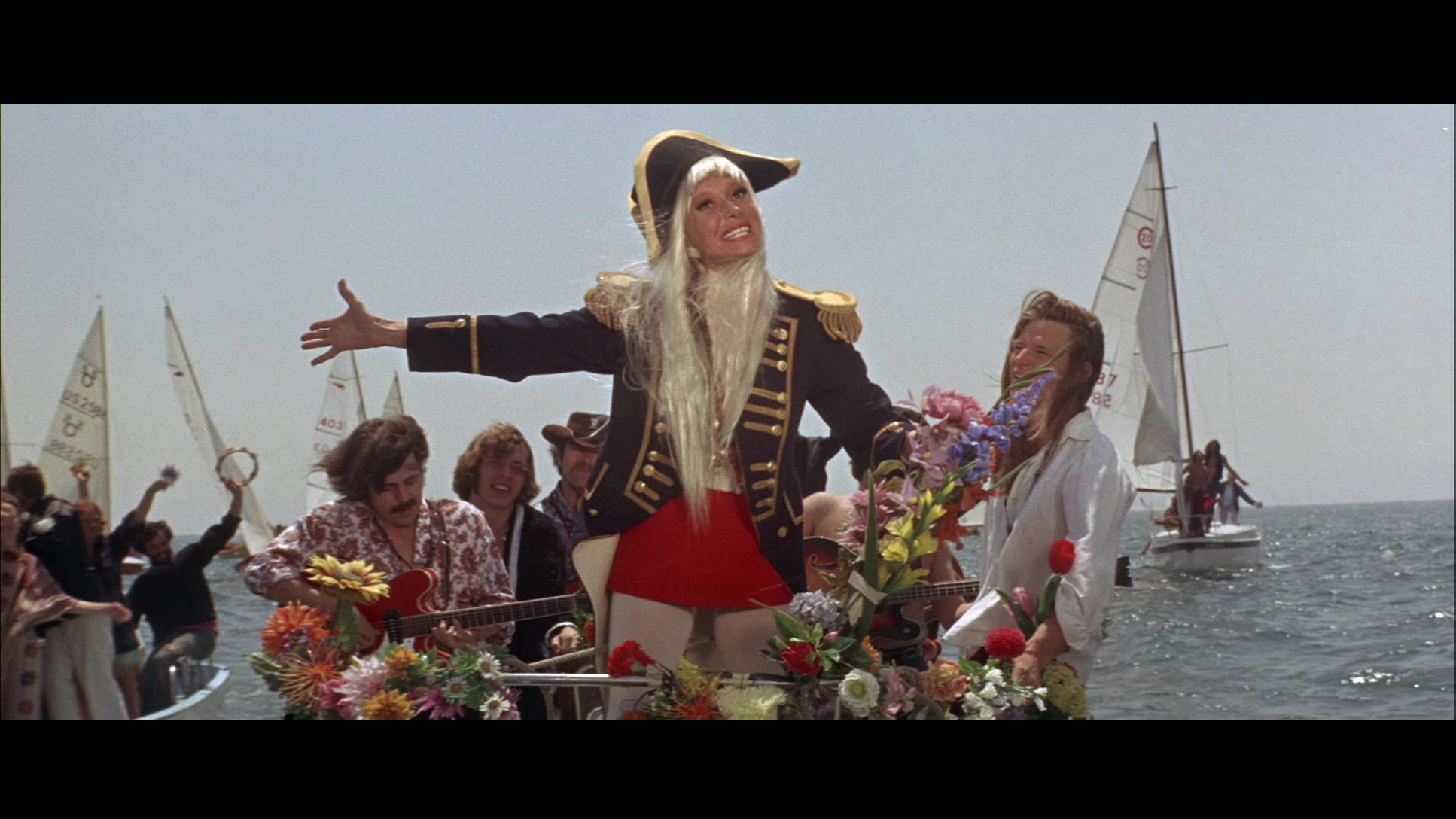 y and endearing now. Perhaps the most clever decision of the entire production was handing over soundtrack duties to the brilliant Harry Nilsson, who comes up with everything from TV jingles to a "garbage can ballet" to a tender ballad ("I Will Take You There"). Nilsson even cameos as one of the dosed prison guards, though the singer/songwriter was really only familiar with alcohol and wound up playing the scene far more drunk than tripped out. However, his finest moment in the film comes at the end when he supplies a song version of the end credits, vocally skipping through all the cast and crew members just after the chaotic rendition of the title song aboard God's yacht (which apparently belong to John Wayne in real life). It's also a real pop culture mindblower to think about Preminger, who had briefly played Mr. Freeze on the Batman TV show two years earlier, reeling some of that show's co-stars in here like Meredith, Frank Gorshin, and Cesar Romero. If you can believe it, this movie actually makes that show look subdued by comparison.