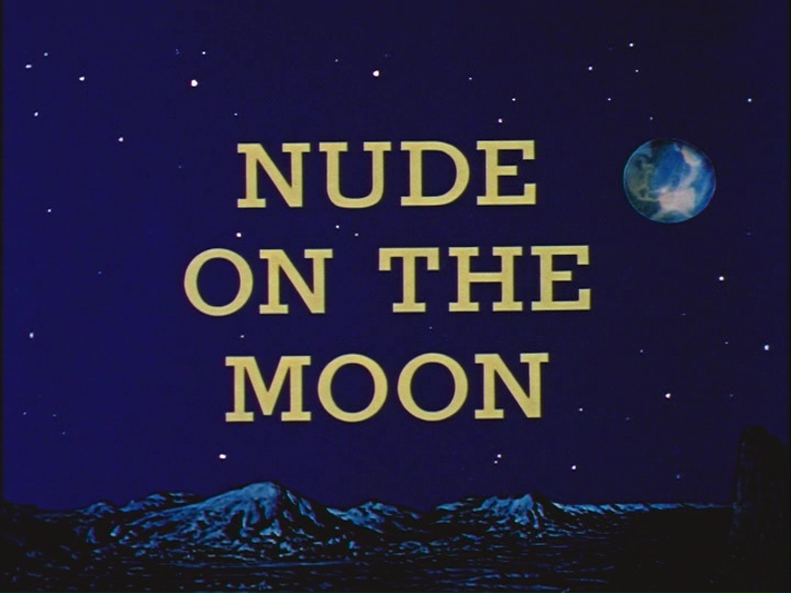 close to the camera. As mentioned above, this film only exists as a German print featuring only a dubbed dialogue track. Fortunately a text copy of all the dialogue surviving courtesy of the film's submission to the New York censorship board; that made it possible to create a new English track for the 2017 Pop Cinema DVD, which isn't all that jarring since Wishman usually had canned, disembodied voices in her films anyway. It's all set to a bouncy, pseudo-Herb Alpert score that works well enough, too. The image quality isn't so hot, looking washed out and dull, and it seems to be from an unconverted PAL source clocking in at a mere 52 mins 41 secs. Also included is an audio commentary with Michael Rasso, John Fedele, and Bowen covering the director's background ("a national treasure!"), the scenes shot inside her apartment, the status of female directors at the time, and the shooting locations (with stock Florida shots from the real Sunny Palms turning among among the main New Jersey locales). Other extras include a brief Atomic TV segment with Wishman (4m24s) and Bowen, a "Nature Girl" nudist short (13m43s) from the legendary Dan Sonney, a "Nudism" educational short (10m53s) with lots of peek-a-boo shots and scientific text inserts, a 1941 "Rock Lodge" short (14m37s) from the National Convention of American Sunbathers Association in New Jersey (interestingly the earliest piece but also the only one with outright frontal nudity), and a trailer for Hideout in the Sun.NUDE ON THE MOON (Blu-ray)
