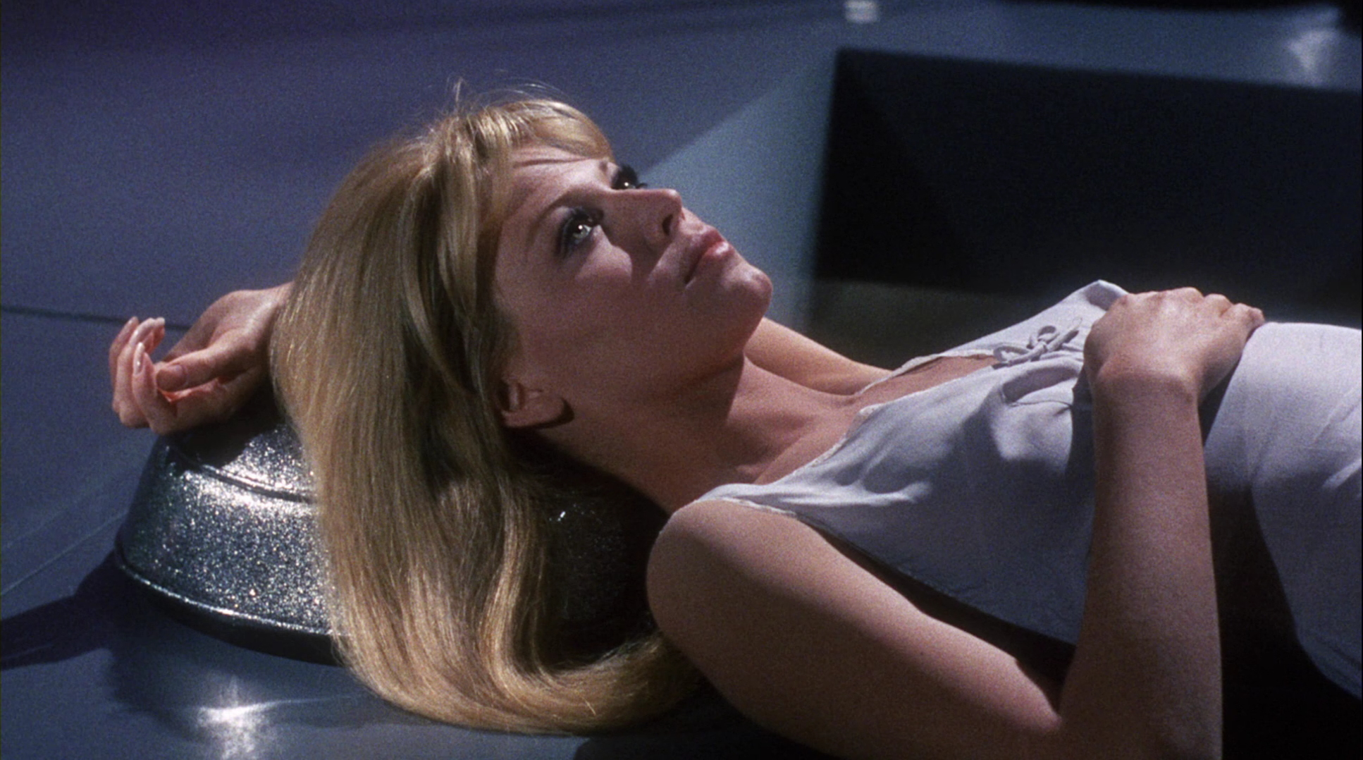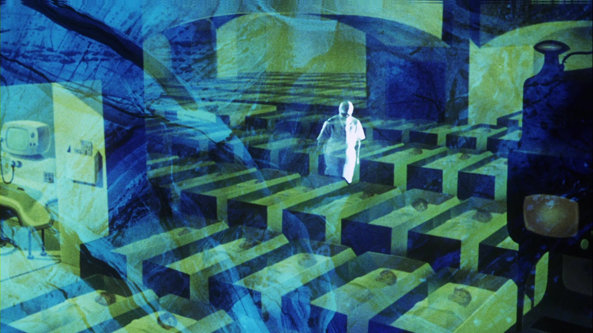 The themes of virtual versus actual consciousness and the symbiotic relationship between technology and biology are all in place here, concerns that would become far more common as special effects caught up to filmmakers' ambitions. If that sounds too cerebral, well, don't worry; there's a lot of entertainment value here, too, including some wild animated sequences (courtesy of Hanna-Barbera!) at regular intervals with lots of bright, splashy colors and superimpositions floating all over the screen. The cinematic drug culture was at its height when this came out, so no doubt Castle was hoping to attract some of the same turned-on viewers who were flocking to 2001: A Space Odyssey the same year. That didn't happen, of course, but seen today this is a fascinating, compelling curiosity with an appealing mixture of '60s pop culture attitude and tantalizing sci-fi concepts. Oh, and for you film score buffs there's a trippy score by the great Lalo Schifrin (Enter the Dragon), too.