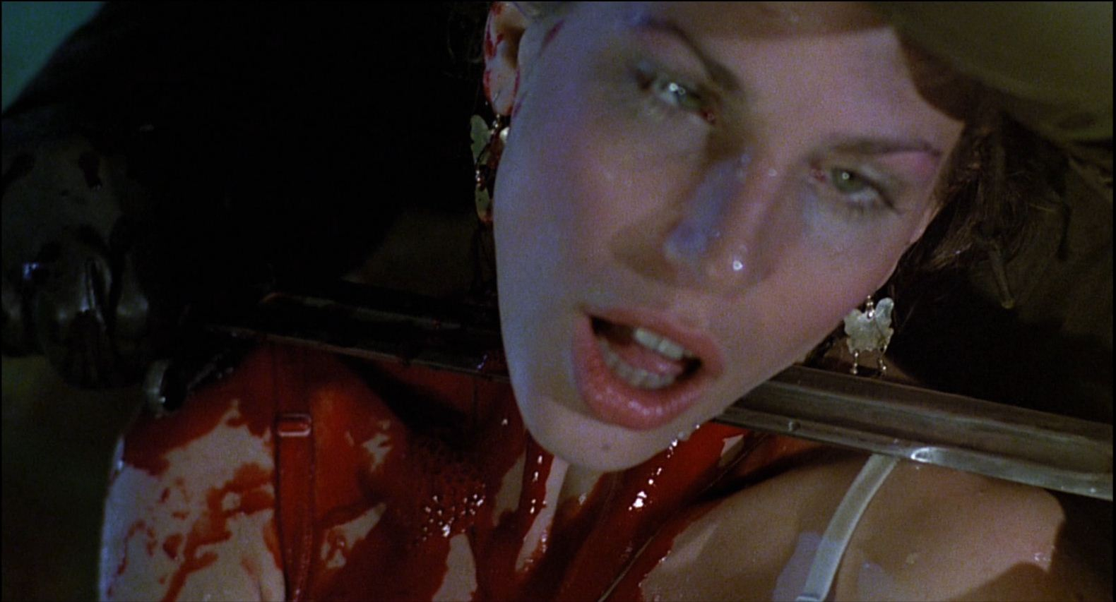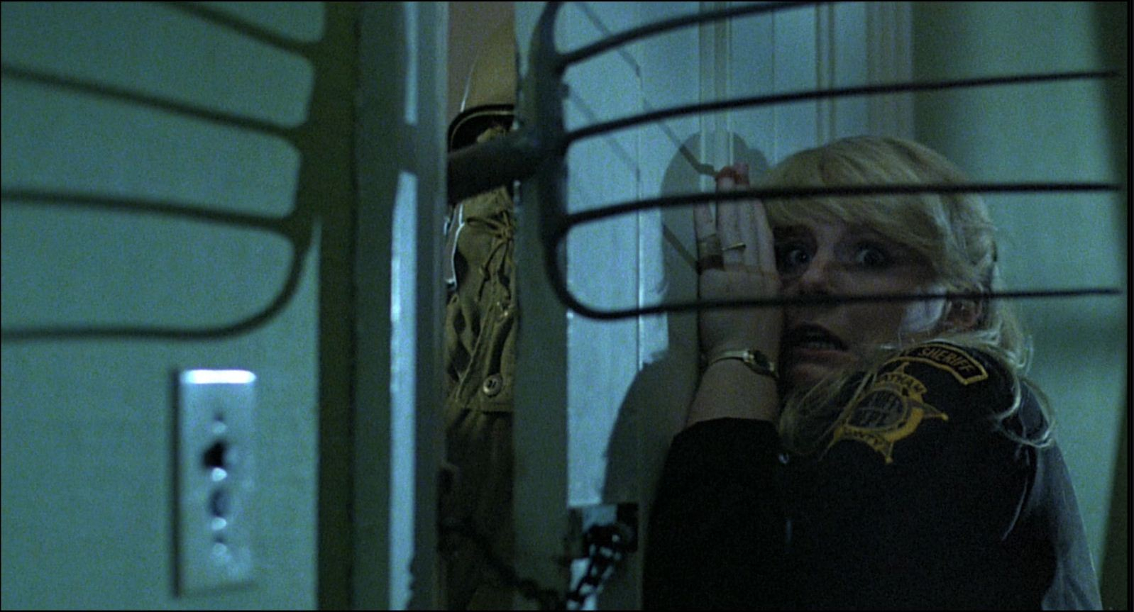 Even more than most slasher films, The Prowler suffered mightily in the VHS era from a combination of muddy, incomprehensible transfers and rampant censorship, with only die-hard Savini fans singing its praises even if his work could barely be seen. Blue Underground's much-needed DVD was one of their first titles out of the gate and presented the film fully uncut, with a transfer solid enough to do some justice to the shadowy cinematography. Released many years later, the Blu-Ray release offers an equally impressive upgrade as the film benefits trememdously from the increased resolution of HD and the removal of obvious but unavoidable compression hiccups encountered during some of the trickier night scenes. Most of the film looks extremely good, but bear in mind that some scenes (especially the ones with Dawson creeping around dark hallways in the middle third) were obviously shot with very low lighting which causes a huge boost in the amount of film grain. Thankfully that's been left intact here rather than scrubbing it all away, so the detail is still here and very filmic. This film will never look sleek or glossy, but this is about as accurate and impressive a presentation as you could possibly get. (Click one any of the screen grabs for a better idea of how this looks.) While the DVD is mono only, the Blu-Ray carries over that track along with a DTS-HD 7.1 and 5.1 mixes which mainly kick in for the instrumental score, the aforementioned Supertramp-lite performances, and the big band music in the opening scene. It sounds just fine and is tastefully done considering the modest nature of the original source. Apart from the DVD-only image gallery, both releases contain the same extras: the theatrical trailer, a nifty reel of Savini's on-set FX creation footage, and a very enjoyable and often funny audio commentary with Savini and Zito (who obviously focus a lot on the effects procedures, including Granger's nervousness with one key appliance and their rationale for the incoherent stinger ending). Definitely a must-have for slasher fans, this is '80s American horror at its most unflinching and a brilliant example of Savini at his horrific best.