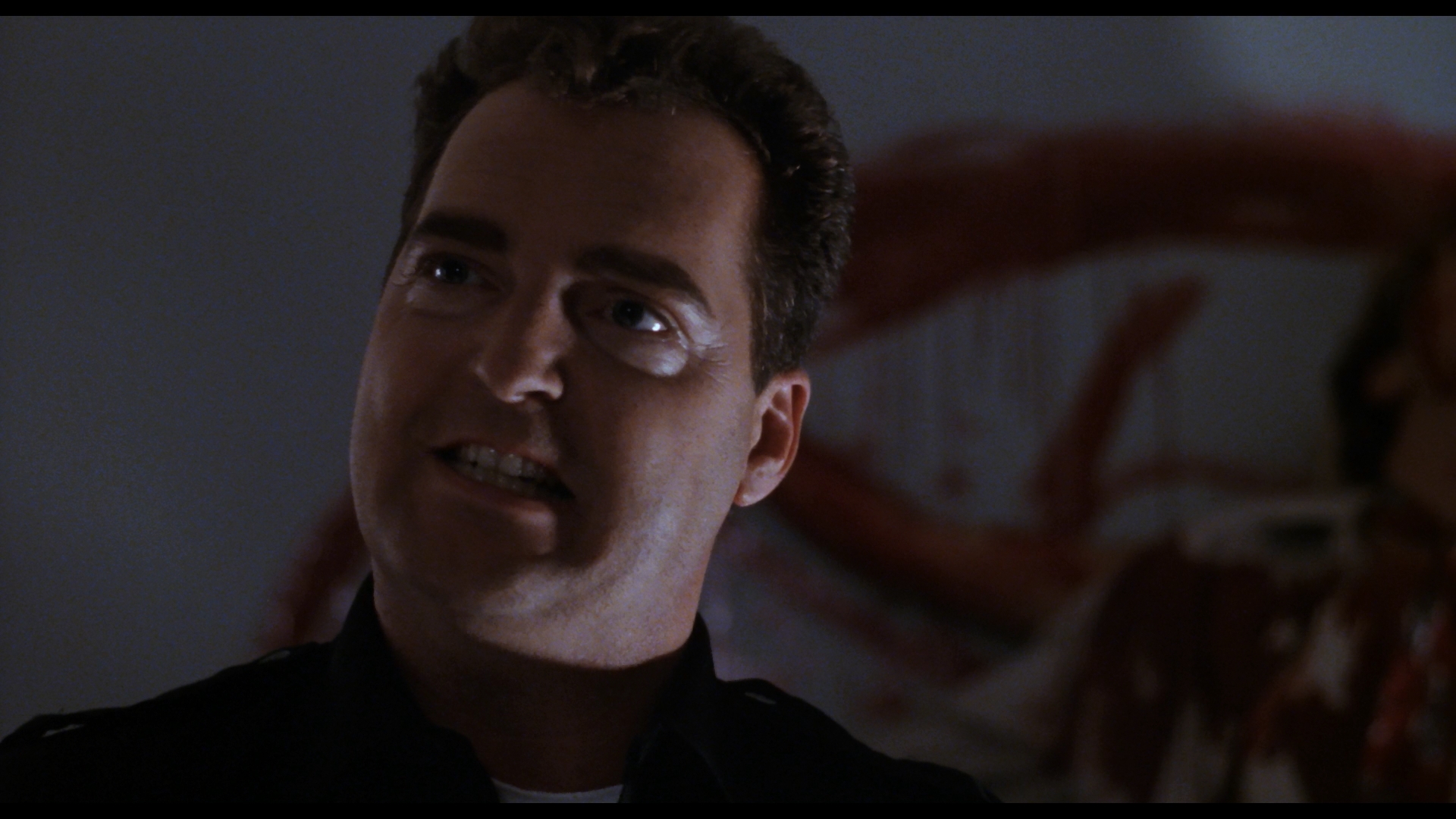 actresses Barbara Niven and Melanie Good, screenwriter Dan Povenmire, and editor Peter Schink. Between the two Rifkin chats quite a bit about how he came up with his nom de sleaze, picking a talented cast and flying some members in with various roles switched around along the way, hallucinating during one scene due to extreme sleep deprivation, and even shooting most of the film at a Burbank office building that now serves as the headquarters for The Cartoon Network. The other participants are full of stories as well involving a Bart Simpson drawing, which cast members thought they were playing it straight, the various romantic and marital connections of the actors, and the complications of shooting mostly at nights. And yes, they talk quite a bit about staging the Rodney King scene, too. In "The Victims of Vickers" (9m32s), special effects artist Mike Tristano chats about his fondness for the film (including the remarkable fact today that it was shot with two 35mm cameras despite its nickel-and-dime budget), his admiration for Rifkin, and his shocked reaction when he first laid eyes on the R-rated cut that threw away most of his handiwork.