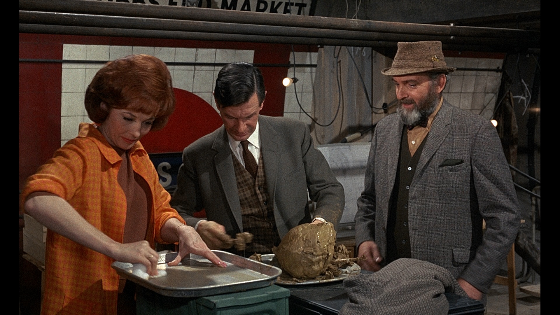 during the Cold War era, Nigel Kneale's quartet of stories about the dogged Professor Quatermass integrated touchy issues of environment, evolution, and basic scientific ethics into what had could have been brainless pulp yarns involving aliens and rampaging beasties. Arguably the high water mark of the cycle is Quatermass and the Pit, a challenging, mind-twisting saga that began life as a 1957 production shown in six episodes on live British television. Nine years later, Hammer Films had already established itself as a strong voice in science fiction with films like Quatermass 2 and X the Unknown, so a big screen remake was in order. The result appeared in American theaters as Five Million Years to Earth and captured an entire generation of stunned kiddie matinee audiences on both sides of the Atlantic.