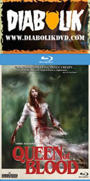 First seen crawling out of a lake in a soggy white dress stained with blood, the wordless Irina (Henry) spends her opening minutes of Queen of Blood skulking around the pastoral outskirts of a town and laying waste to anyone who crosses her path. If she looks more than a bit like the title character from Jean Rollin's The Living Dead Girl, that's hardly accidental since she even recreates her predecessor's murderous method of plunging her sharp fingers into her victims' flesh to draw out their blood. Title cards split the action into "Birth," "Death," and "Rebirth" as she tangles with locals including a not-terribly-stable preacher (Skinny Puppy's Ogre) and a pregnant widow (Gemmell) whose impending delivery figures in the film's Inside-inspired climax.
