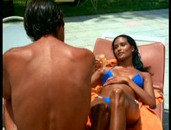 with distinctly odd results. This time out Emanuelle is unhappily married to Victor (Agelopou), whose jailbait stepdaughter Livia (RussO) is about to enter into womanhood. When the better-off-dead Victor meets his maker, Emanuelle claims what's his and takes charge of Livia, while her swarthy part-time-lover Mario (Tryfonas) begins to make trouble insinuating exposing her for a murder plot. Meanwhile Emanuelle beds down with her husband's old friend Tommy (Tinti), setting up a nasty finale which puts Livia in jeopardy.