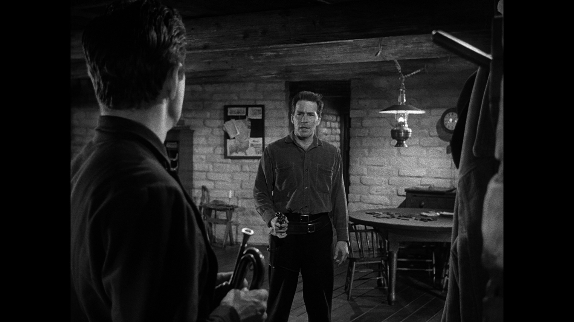 swapping out the restoration peek for something much more substantial, a new audio commentary by the always welcome western expert C. Courtney Joyner, who offers a dexterous analysis of the film’s placement in the canon of Fox westerns, its influence on later works, and the career status of the major players at the time. The LPCM English mono track with optional English SDH subtitles is also flawless. The transfer here is culled from the same great source, here with slightly richer black levels and a more robust bit rate; it isn’t a night and day difference, but fans of the film should find this release to be the one to beat for quite a while.