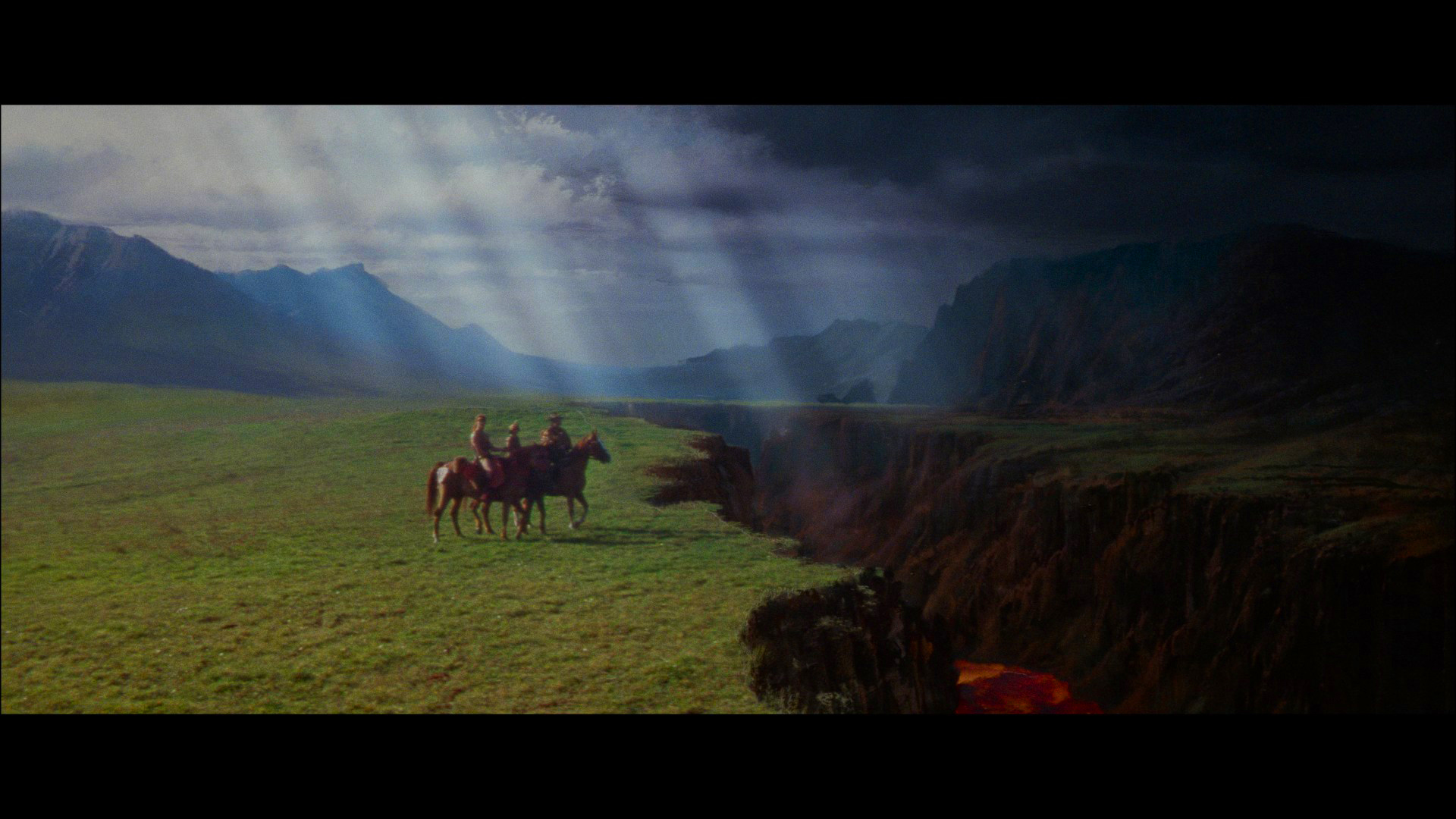 finish with a heavy teal and urine color scheme that's impossible to watch for more than a couple of minutes. For what it's worth, that release (which has a "remastered" Blu-ray for good measure) comes with English or French 5.1 DTS-HD MA audio plus French or German 2.0 mono with English, French and German subtitles. Both previous featurettes are here plus the original trailer, a new trailer to show off how godawful the "restoration" looks, and in the sole saving grace of the release, the 2020 Italian doc Renato Casaro: The Last Movie Painter (97m32s) and a gallery of art devoted to the artist behind numerous