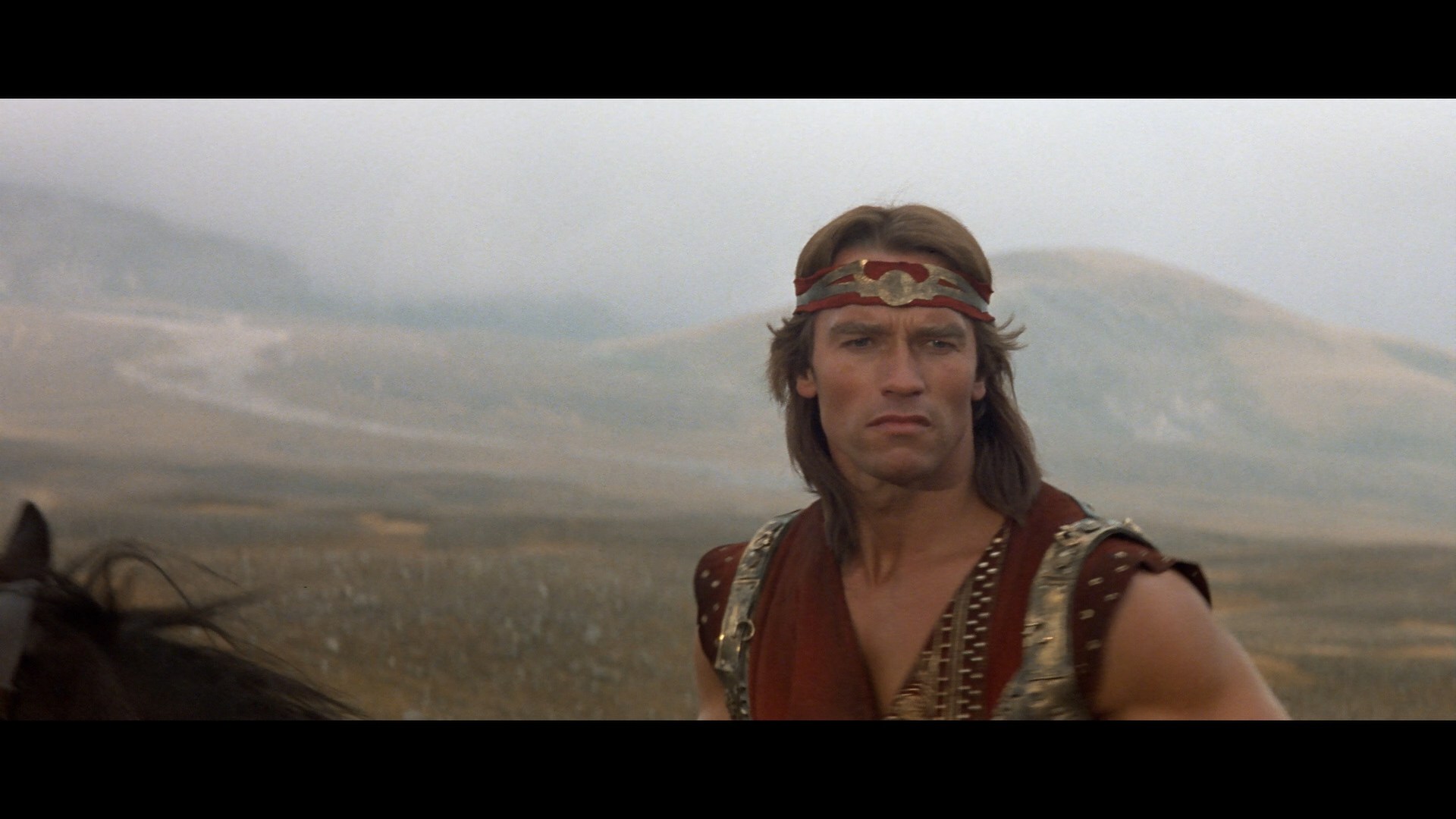 time and has been on home video numerous times including an okay Warner DVD in 2004. Pretty much everywhere else in the world, the film is controlled by StudioCanal (or whichever spelling of the company's name you prefer) who first issued it on Blu-ray in 2010 via its own name and affiliates (eventually folded into the main company) Optimum in the U.K. and Kinowelt in Germany. That release looked pretty good at the time and came with English and French 5.1 DTS-HD audio options plus German, Italian, Spanish, or Russian 2.0 mono, with Dutch, French, German, Italian, Spanish, Turkish, Danish, Norwegian, Swedish, Finnish, or Russian subtitles. The film was mixed and released theatrically in mono for some reason, but the 5.1 remix sounds okay even if Morricone's rather thin-sounding score doesn't particularly lend itself to having lots of reverb added on. Also featured on the disc are a trailer and "Arnold Schwarzenegger: The Man Who Raised Hollywood" (15m39s), an okay featurette on Schwarzenegger’s early career with colleagues like Peter Hyams, Arthur Allan Seidelman, Edward Pressman, Michel Ferry (an assistant director on Red Sonja), and others chatting about the star's career from Pumping Iron onward. Then Ferry turns up solo for "Red Sonja vs. Kalidor: The making of a Misunderstanding" (12m3s) an archive interview with assistant director Michel Ferry about De Laurentiis' technical prep for the film and the complications of making a Conan film where you couldn't use the character's name.