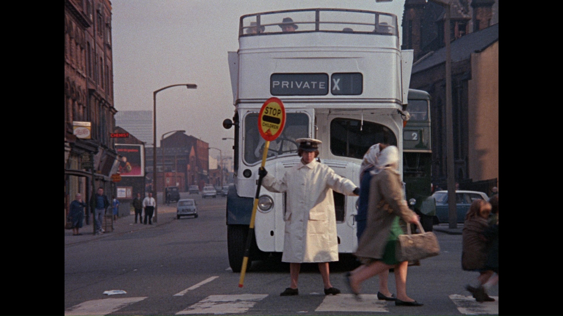 LPCM English audio on the Blu-ray (48kHz/24-bit) with optional English subtitles is also of top-notch quality. A new commentary by Adrian Martin is quite useful and well-informed as he covers the transformation of Brook's segment (which was apparently recut quite heavily) and the director's admiration of Jean-Luc Godard, the visual motifs in Anderson's work that come into poetic play here, the stylization of sound in each sequence, and the history of the seven Bassiak songs presented here in their English-language iterations. The invaluable "-About The White Bus" (58m48s) also dates from 1968 and amounts to essentially a proto super-sized bonus feature with extensive coverage of the process from hiring the cinematographer Miroslav OndrĂcek (who shot the early Milos Forman films and went to if...) through the logistics of directing the bus through actual locations in peak hours and recording the score by Misha Donat. A spoken intro by Anderson (8m51s) at the National Film Theatre in 1968 is accompanied by numerous stills from the Anderson and Richardson shorts, while "Behind the Scenes of Red and Blue" (6m50s) is a compilation of coverage from the shoot (including some great rear production driving bits) with commentary by editor Kevin Brownlow, who cut the second and third shorts. A new interview with Brownlow