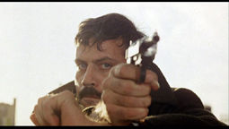 Acquired from a third party by drive-in favorites Independent-International Pictures, Revolver was distributed theatrically in 1974 in the United States. Initially tested under the title In the Name of Love with an ad campaign that played up Ollie's Women in Love romantic turn, it soon received a down n' dirty exploitation makeover becoming the more widely-known Blood in the Streets. Unfortunately, the new Dirty Harry/Death Wish-inspired marketing still didn't attract customers. According to I-I head honcho Sam Sherman, "The film played a minimum of dates and nobody wanted to book it, I couldn't give it away. Revolver did basically nothing for us in the U.S. and was a big waste of time. It didn't play any TV and the home video sales were also very poor. I had to keep drumming it into my head that if I really liked a film I had to stay away, because it would do nothing." Regardless of numbers, with a little digging the more adventurous VHS collector could turn up copies on I-I's Super Video offshoot. Once a nice addition to the shelf, this 1984 tape has now been officially rendered useless by Blue Underground's sterling DVD release. Frankly, this is one gorgeous disc. The picture is crisp with realistically rendered colors, and there's nary a blemish or compression flaw in sight. The 1.85:1 framing looks perfect and adds an essential amount of visual information to the sides when compared to the previous P&S tape. (For compositions set up this carefully, you need to see them in the proper ratio.) The mono soundtrack is clear and concise, without any noticeable background hissing to drown out the dialogue or Ennio Morricone's wonderful score. Completests will also be happy to note this new digital version runs approximately 40 seconds longer than the old prerecord (109m31s / 108m51s). The main addition is another half-minute of footage at the very onset of the film, as Fabio Testi and his partner are running from a bungled robbery. The remainder of the difference is comprised of various frames previously lost to print damage, including a brief dialogue snippet. It ain't much, but it's there nonetheless.